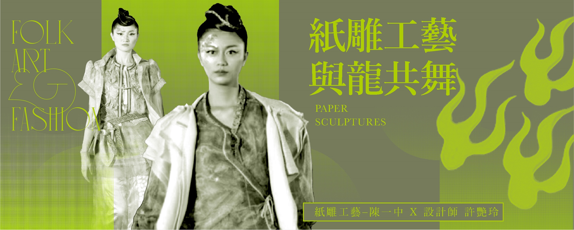 ❖ 紙雕工藝與時裝設計跨域共創,藉由材料上的轉繹,在紙與筆刀、布與剪刀之間,以擬仿概念重新詮釋「龍」的民俗文化特徵,並以拼接與刻花擬真紙雕在纖細轉折處仍保有貫穿全體的力度。結合民藝與時尚,在如同儀式追求盡善盡美的過程中感受如信仰的精神。
