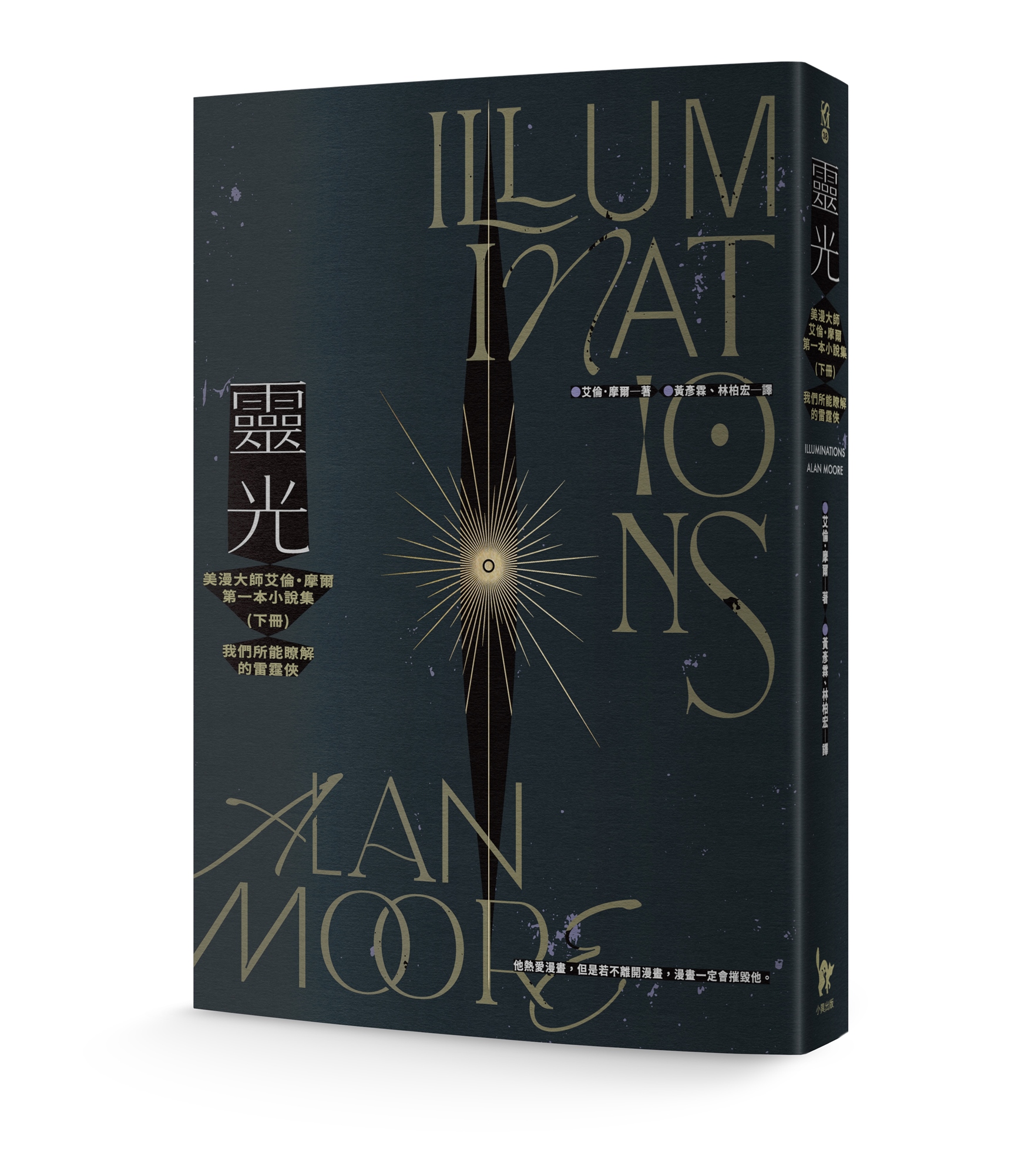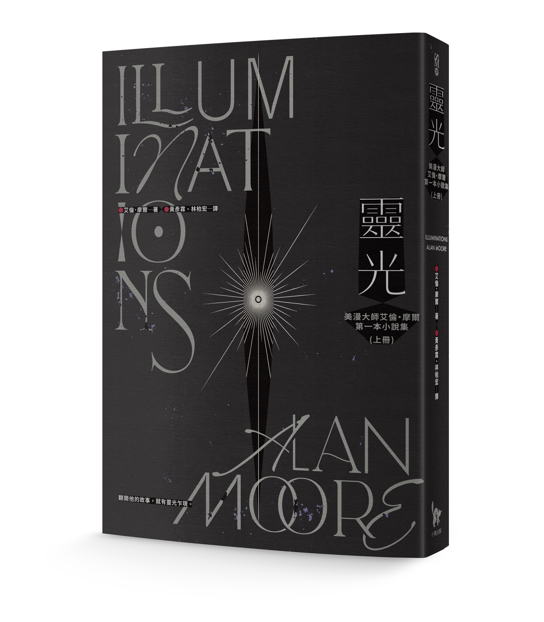艾倫摩爾是提及超級英雄、美國漫畫時不可能遺漏的標竿人物。然而,2017年,他發表文章表示超級英雄的氾濫阻礙了文化產業的發展,次年正式決定揮別圖像的世界,可是他並未放棄故事。他親自動筆創作小說,一寫不可收拾,完成的作品正是《靈光》一書。這本前所未有的故事集包含五篇已發表作品,四篇全新故事。除了打破類型界限,更利用內文排版、後設小說以及海量註解,突破文字書的既有形式。除在創作上自我挑戰,更是對讀者的大腦下戰書。我們可以說,艾倫摩爾的筆就是魔杖,他的文字就是魔法。