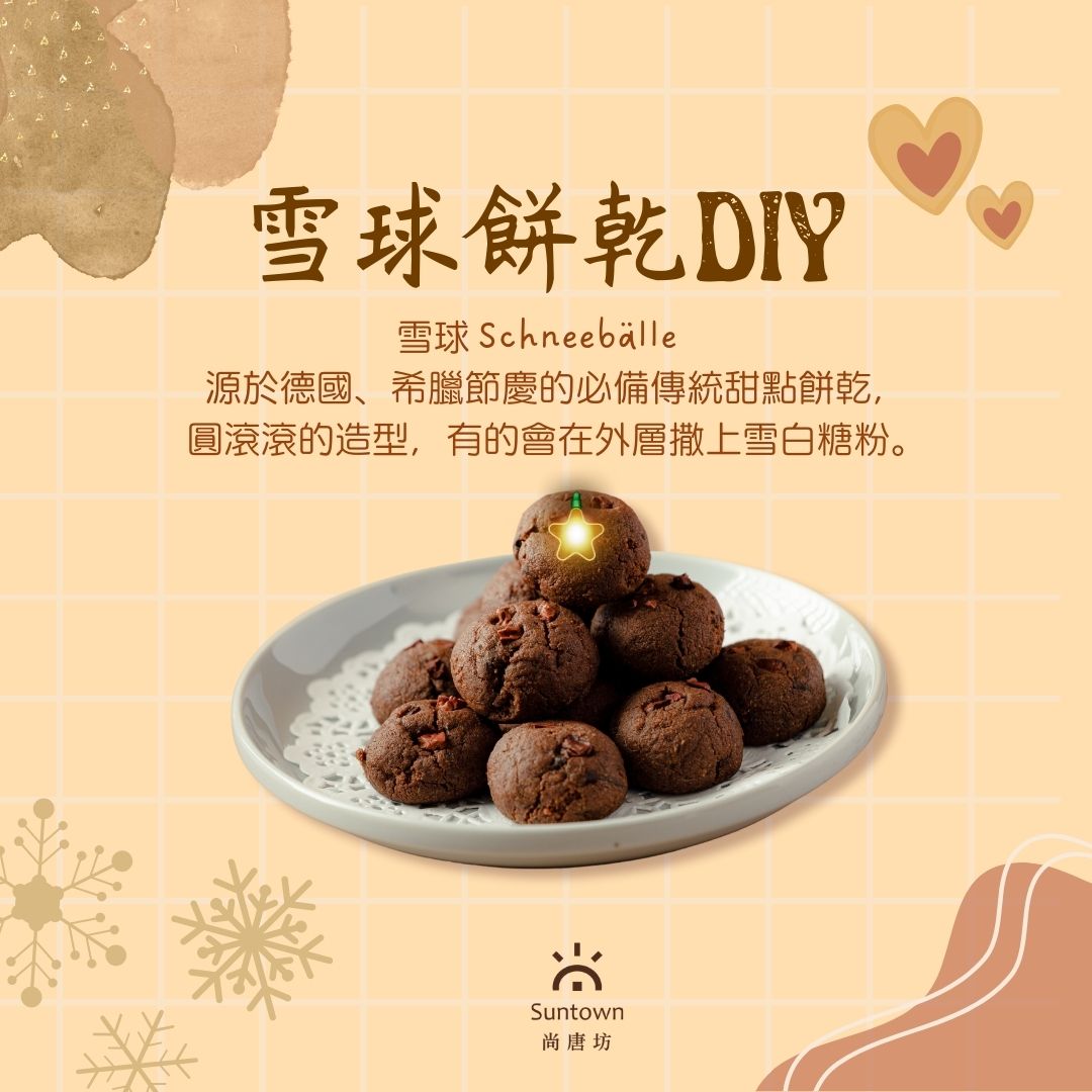 ☆雪球schneebälle源於德國、希臘節慶的必備傳統甜點餅乾,圓滾滾的造型,再撒上雪白糖粉就是它名字的由來。