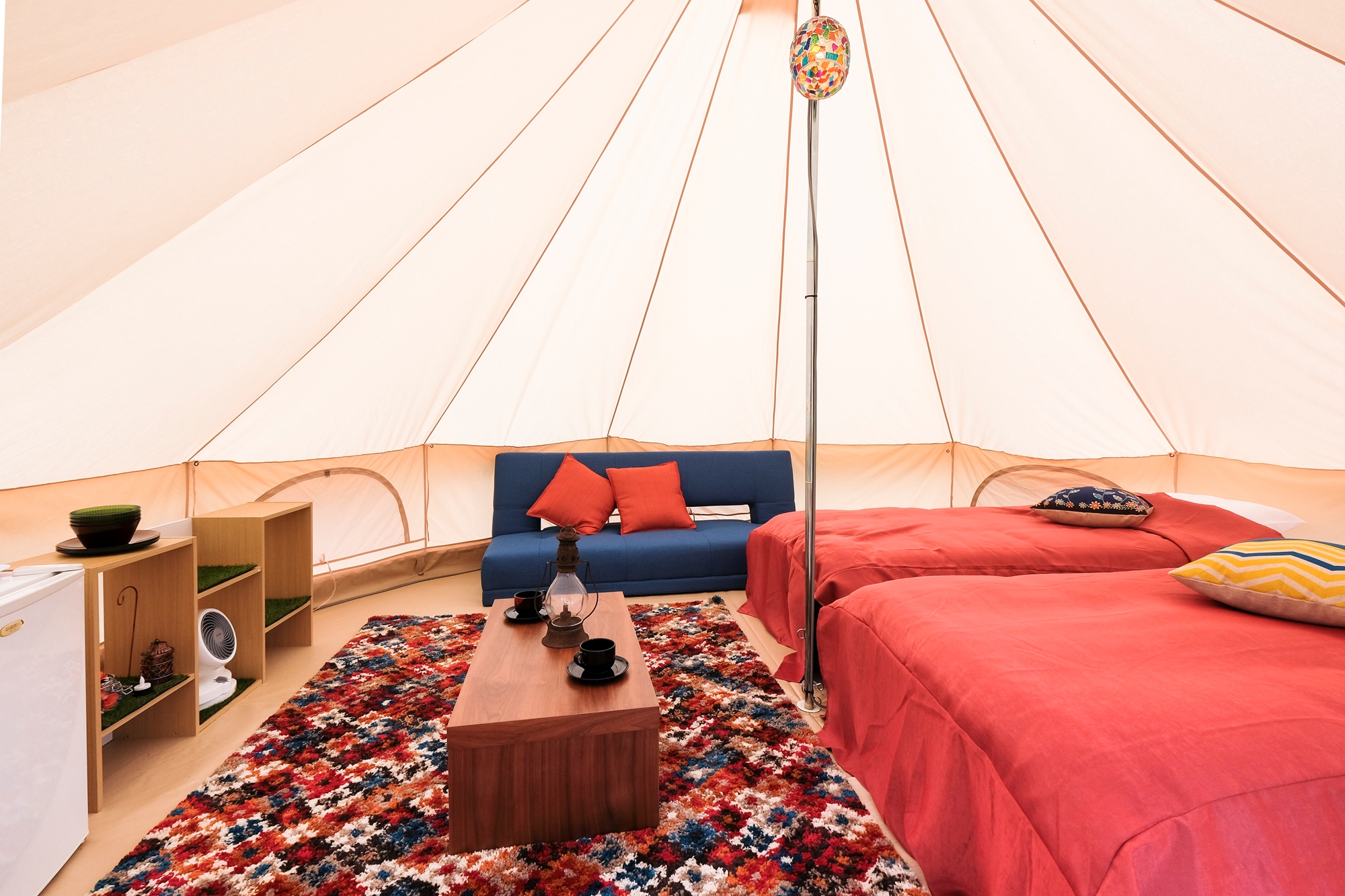 | 特色 | ・奢華露營提供帶有荷蘭爐烹飪的燒烤套餐晚餐!同時供應新篠津產的蔬菜。 ・奢華露營帳篷內配備沙發、床、電熱水壺、冰箱、毛巾、盥洗用品、咖啡、礦泉水和電源,絕對值得一看! |