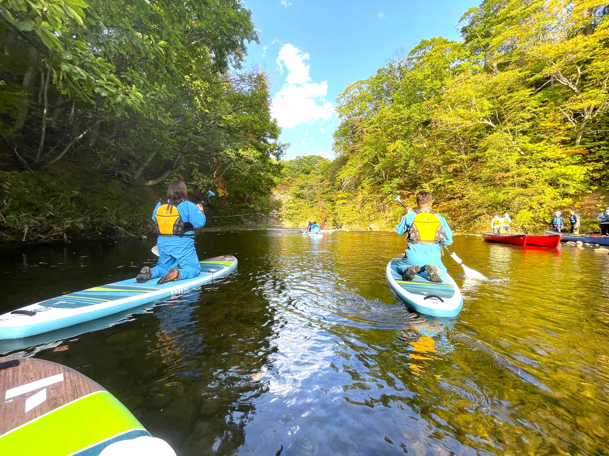 | 商品内容 | 定山渓的溪谷SUP是一項受歡迎的活動, 可以划著SUP板在溪谷中前進。 從9月中旬到10月下旬左右, 您可以欣賞到僅在這個時候才能見到的溪谷紅葉。 河流流速相當緩慢,水深由淺處開始,並有提供英語導遊陪同, 所以即使是初次體驗者也可以放心參加。 您可以以最舒適放鬆的方式,享受悠閒輕鬆的時光。 |