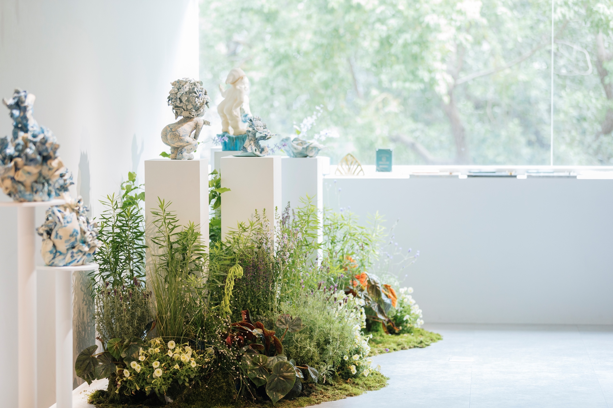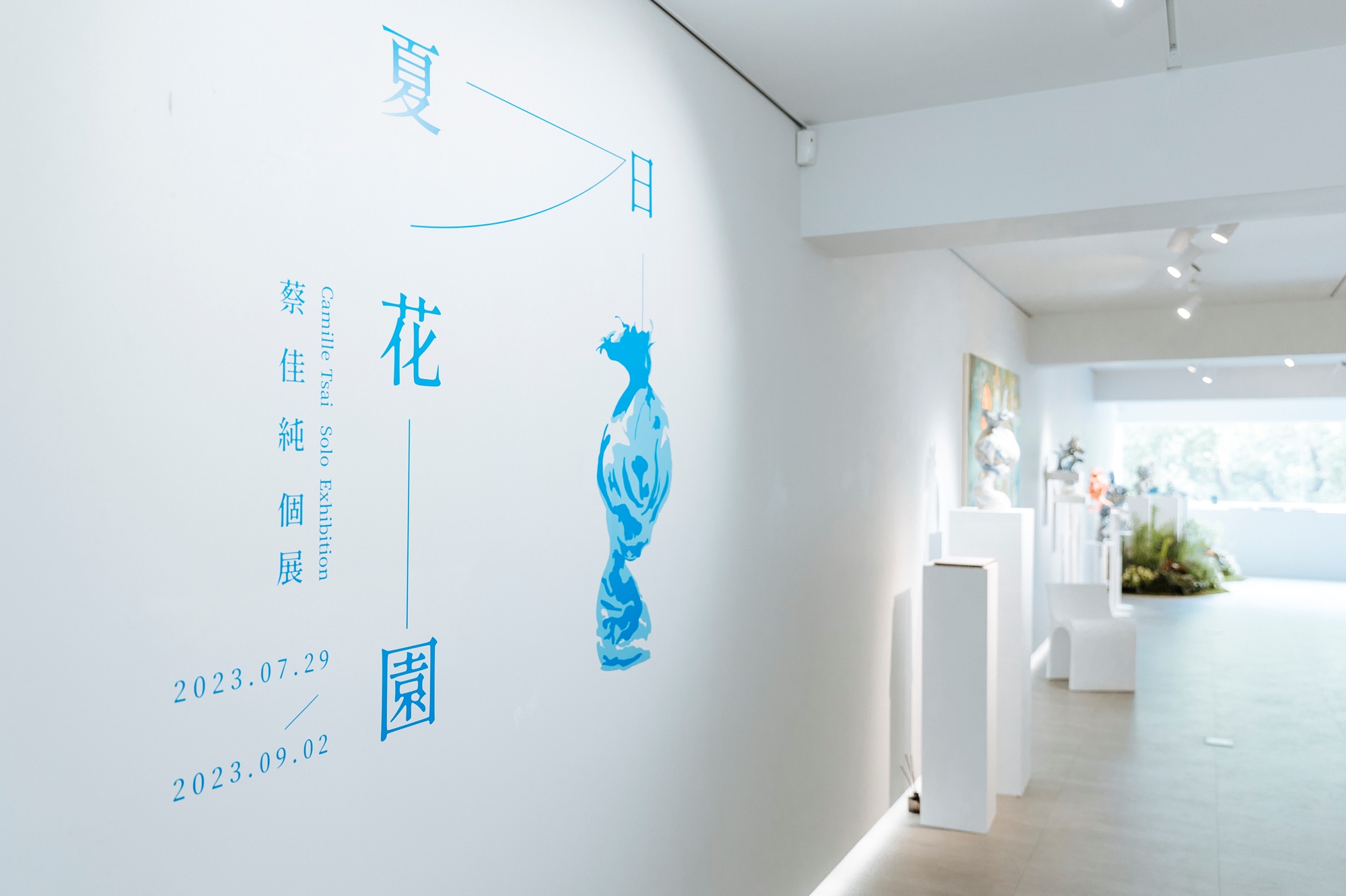 《夏日花園》為藝術家蔡佳純Camille對世界最純粹的想望,由「藍白絞胎青瓷」與「大地元素之馬」兩大主題呈現,受到夫家傳世的丹麥哥本哈根手繪青花瓷啟發,使用少見的絞胎手法創作,同時透著東方典雅的底蘊。