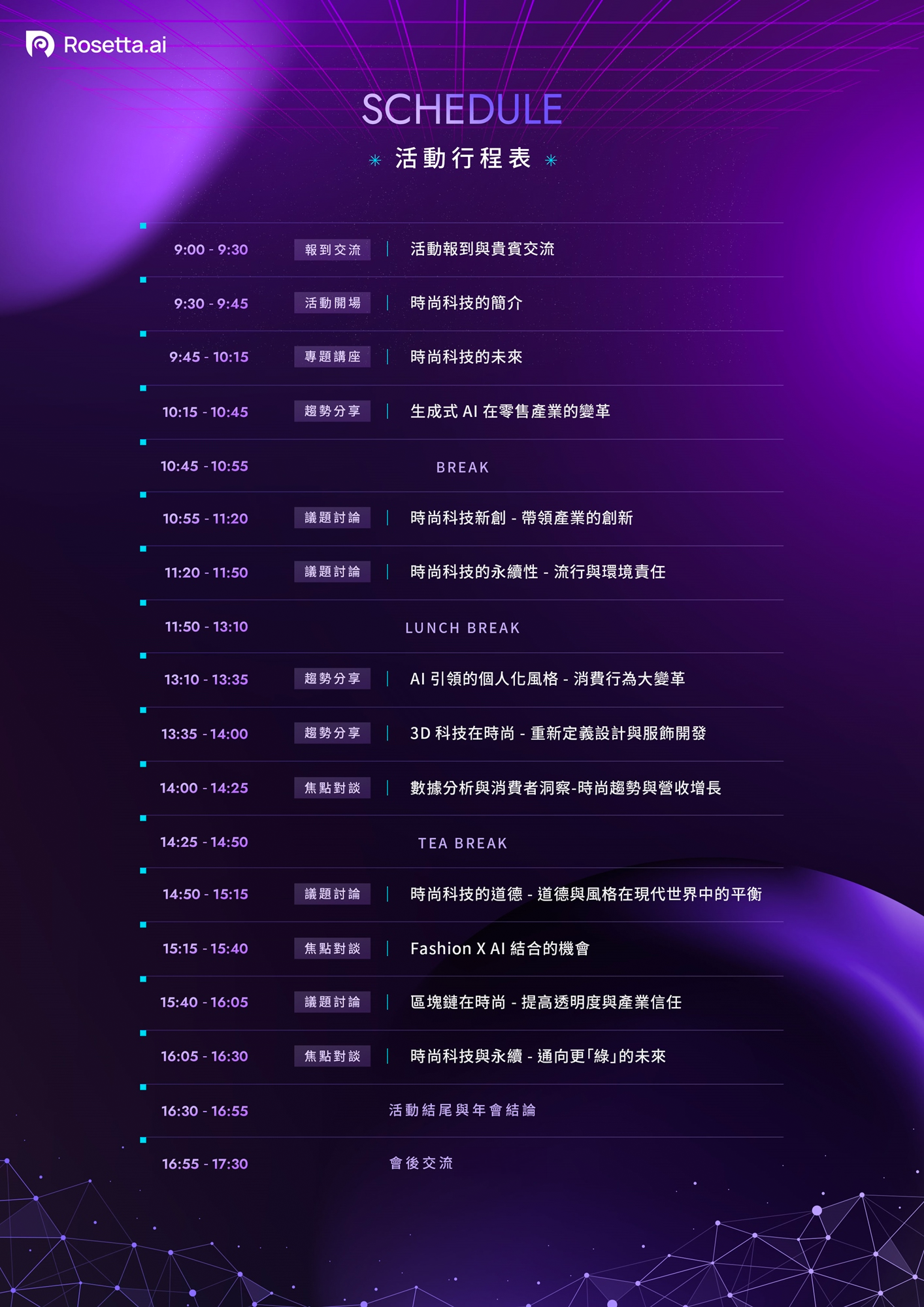 Rosetta AI 誠摯地邀請各個品牌電商於 2023/10/04 (三) 蒞臨參與大型時尚科技年會,與我們一起探索時尚與科技的趨勢及應用,學習如何結合數據資料、創新設計及科技技術滿足消費者的需求。成為台灣時尚圈及品牌零售的先行者,為未來的時尚產業注入更多的可能性!