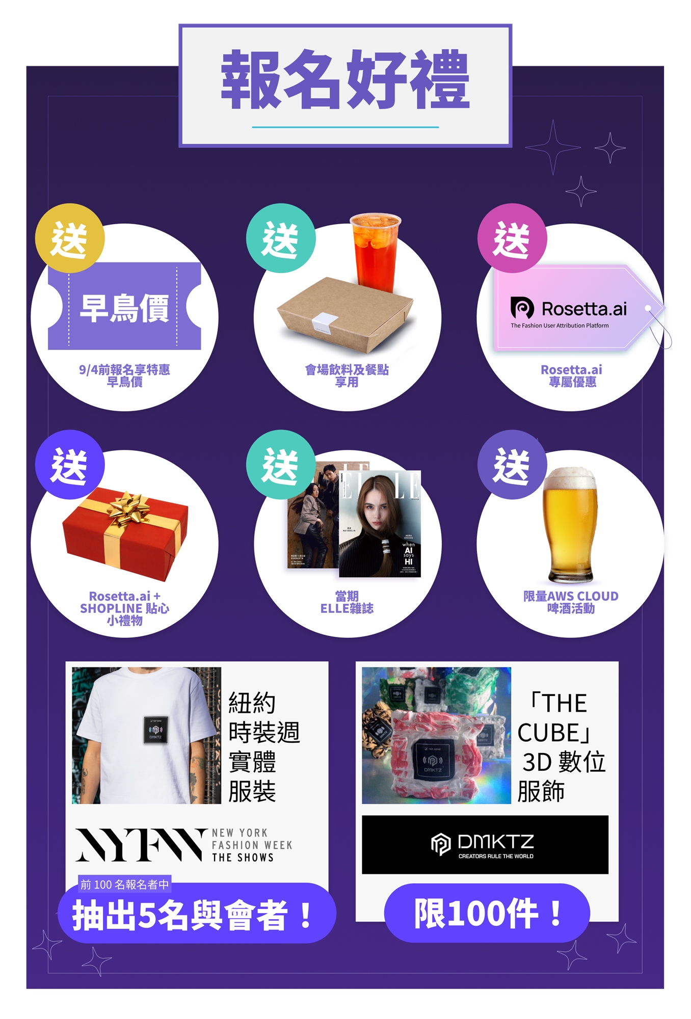 * 活動當天將會從前 100 名報名者中再抽出 5 名與會者,將有機會獲得來自紐約時裝週的實體服飾。 立即報名獲取最新區塊鏈與時尚的結合的成品!