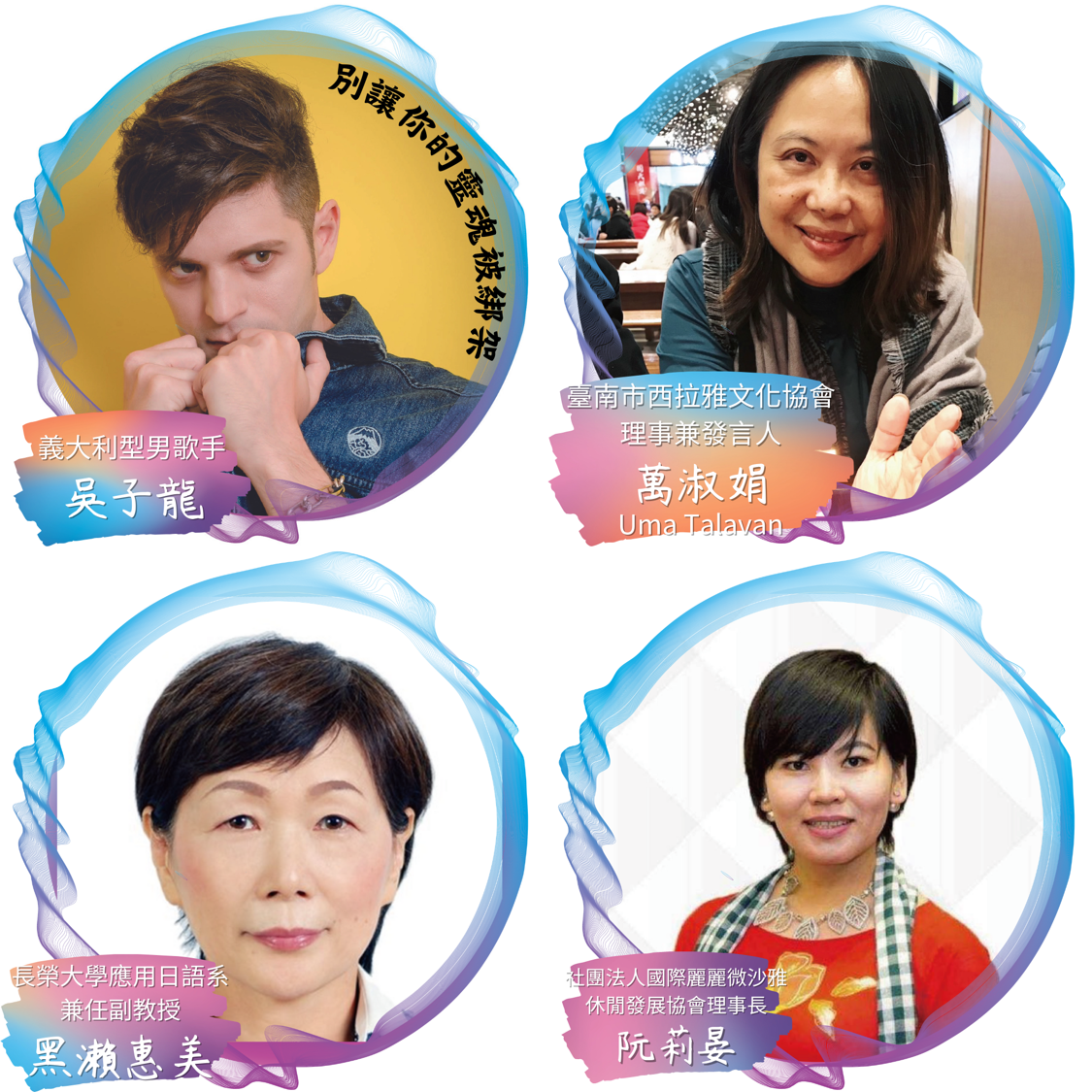 - 萬淑娟:西拉雅文化的推動者,分享如何在西拉雅文化的探索中找到自我認同,進而致力於文化復興。