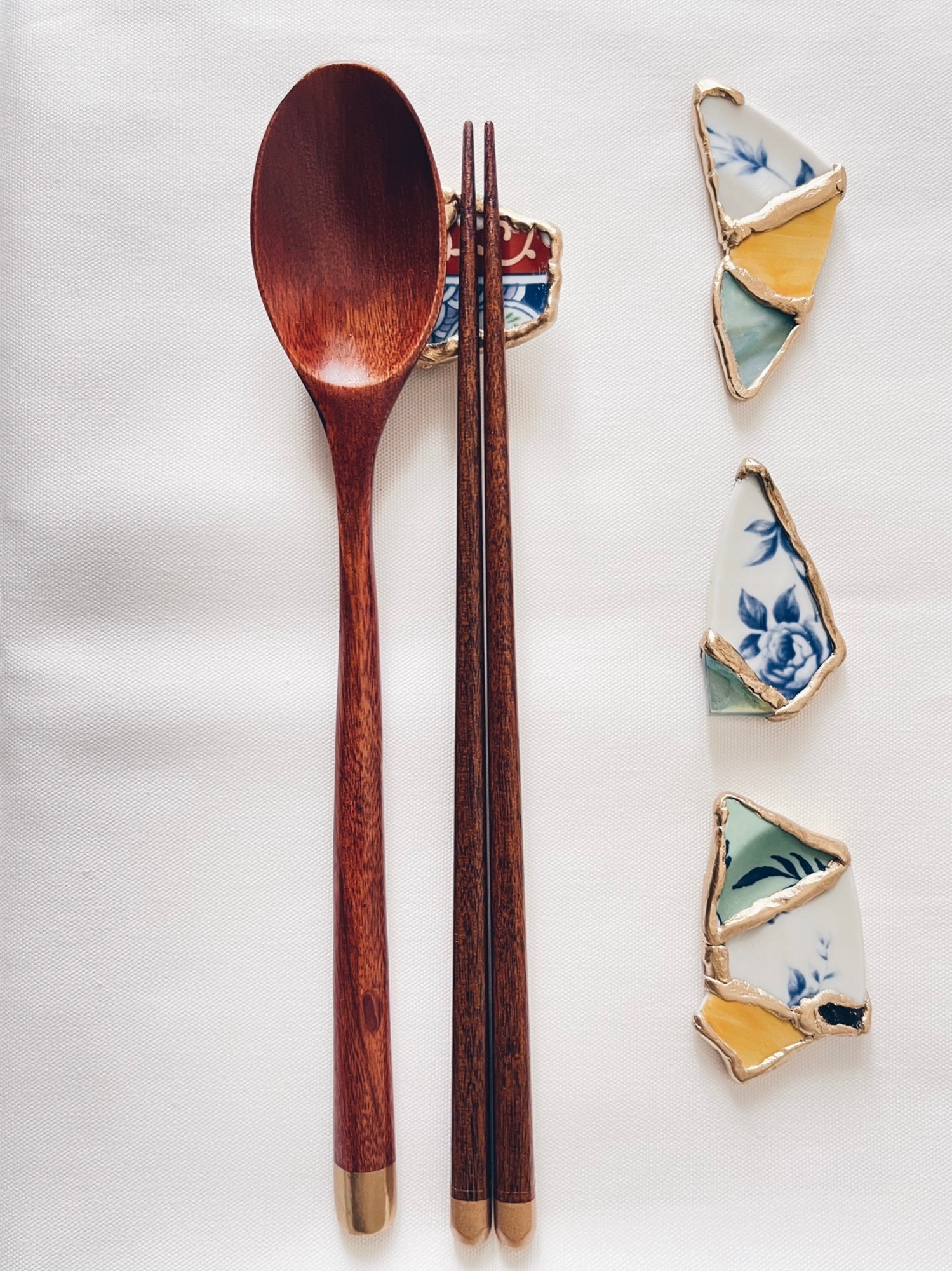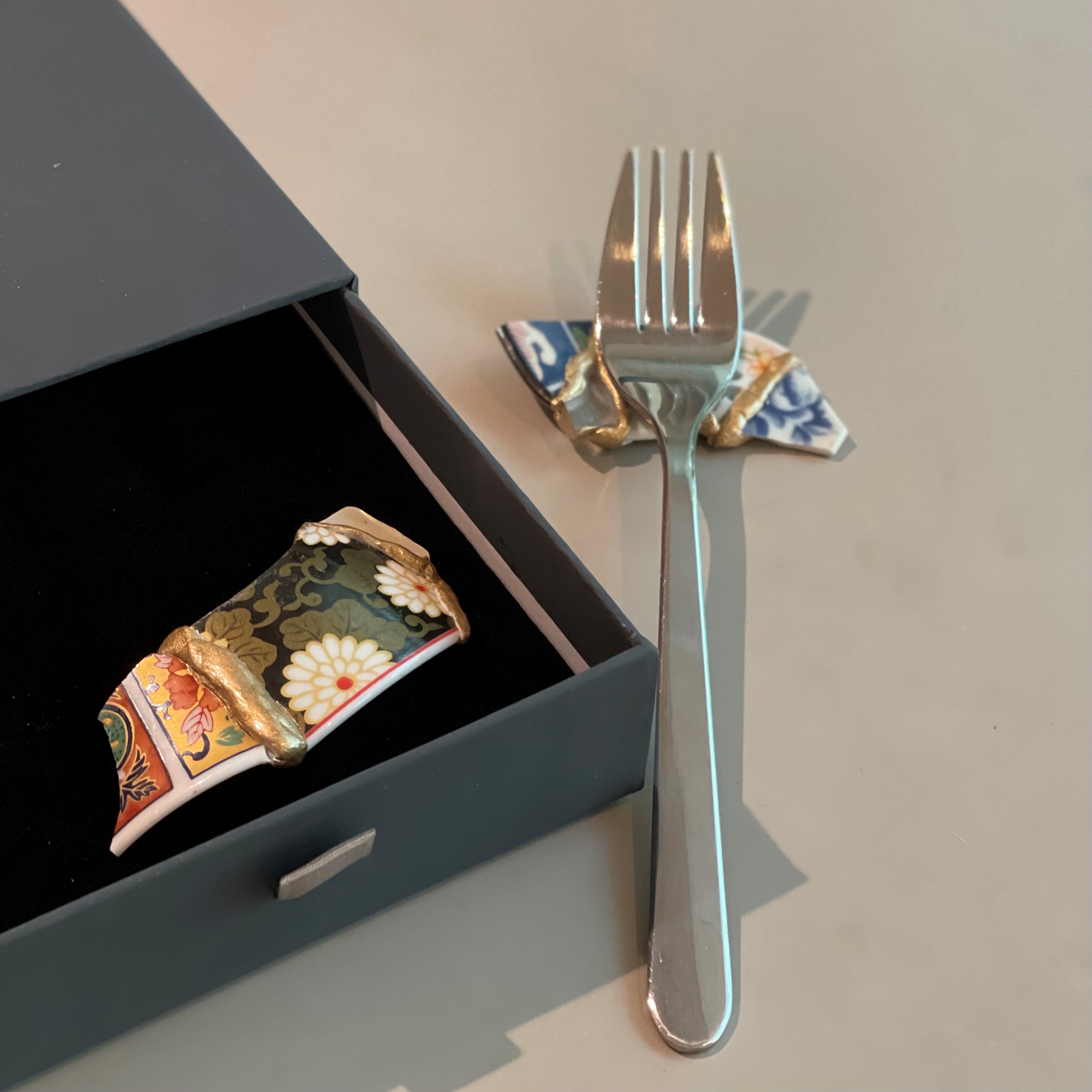 因著時代變遷傳統金繼也開始有了蛻變因此衍伸出現代金繼,依照器皿的種類及破碎位置可以藉著現代金繼的特性加以修復來補強傳統金繼的不足除了減少修復時間也使得器皿能夠更長久使用,現代金繼在許多藝術創作相繼被看見不在單單只是修補工藝而是一種藝術文化。JW想藉由筷架製作過程中使大家更加感受到金繼的魅力所在,用不同的眼目看見真實價值並審視真正美的意義。
