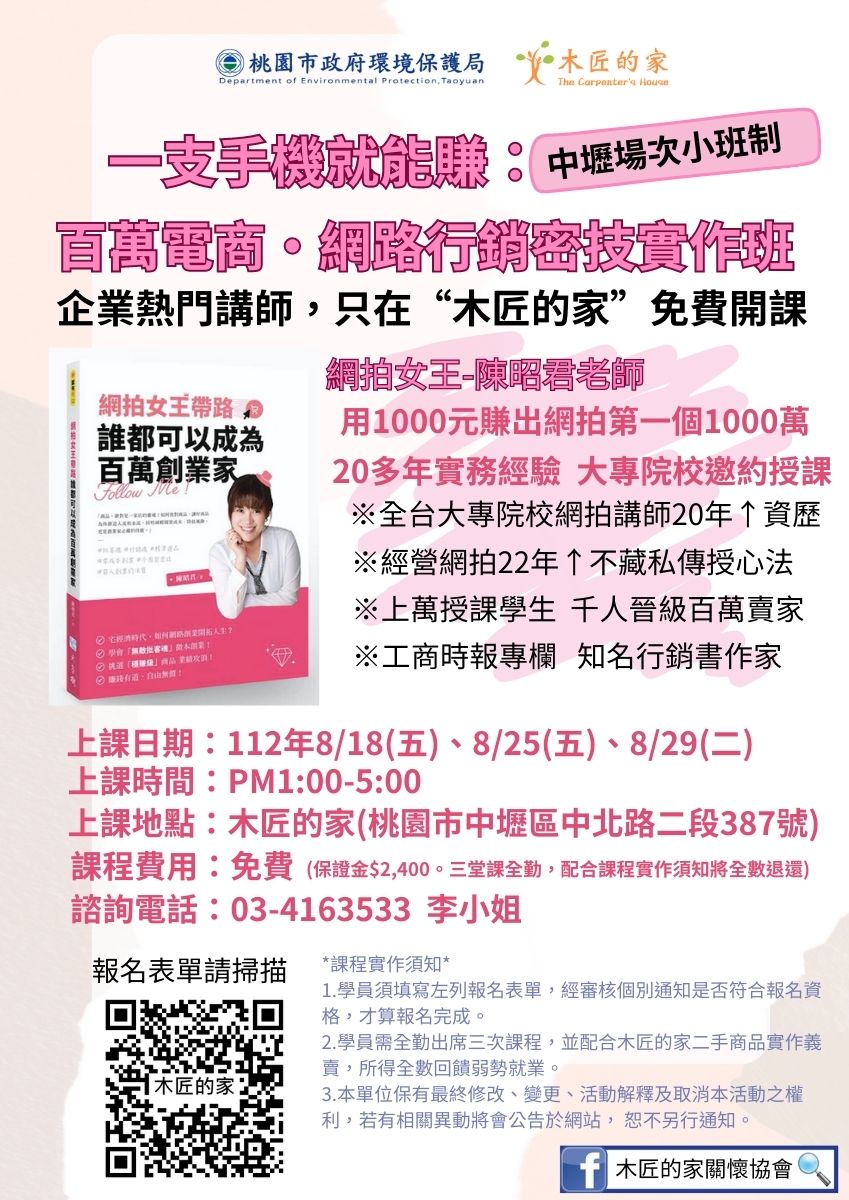 一支手機就能賺:中壢場次小班制。百萬電商‧網路行銷密技實作班