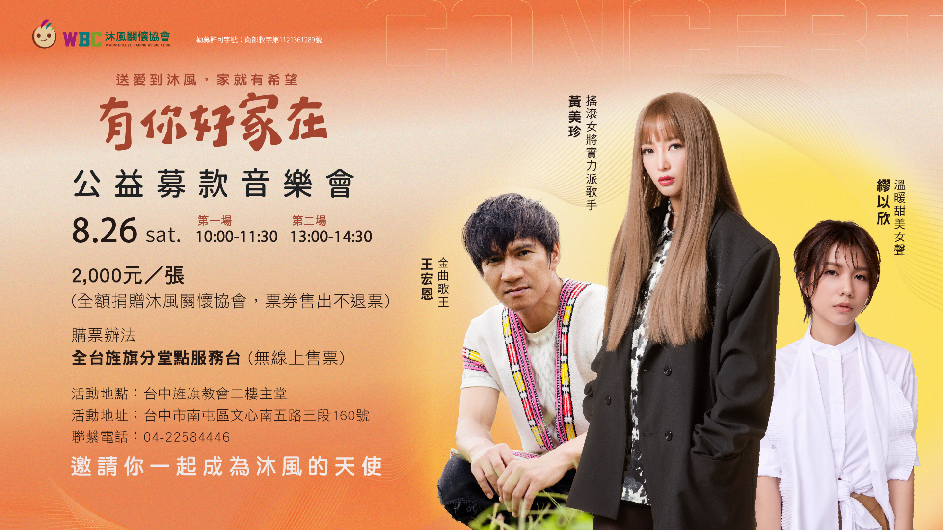 沐風公益募款音樂會邀你和聲傳愛,與我同行!