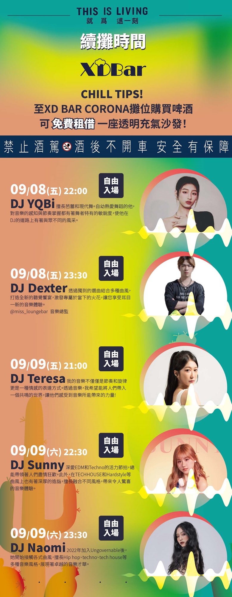 1. 售票場次限年滿18歲參與,未滿18歲請勿飲酒,禁止酒駕,酒後不開車,安全有保障,酒後請找代駕,兌換可樂娜啤酒時須出示身份證,敬請見諒。