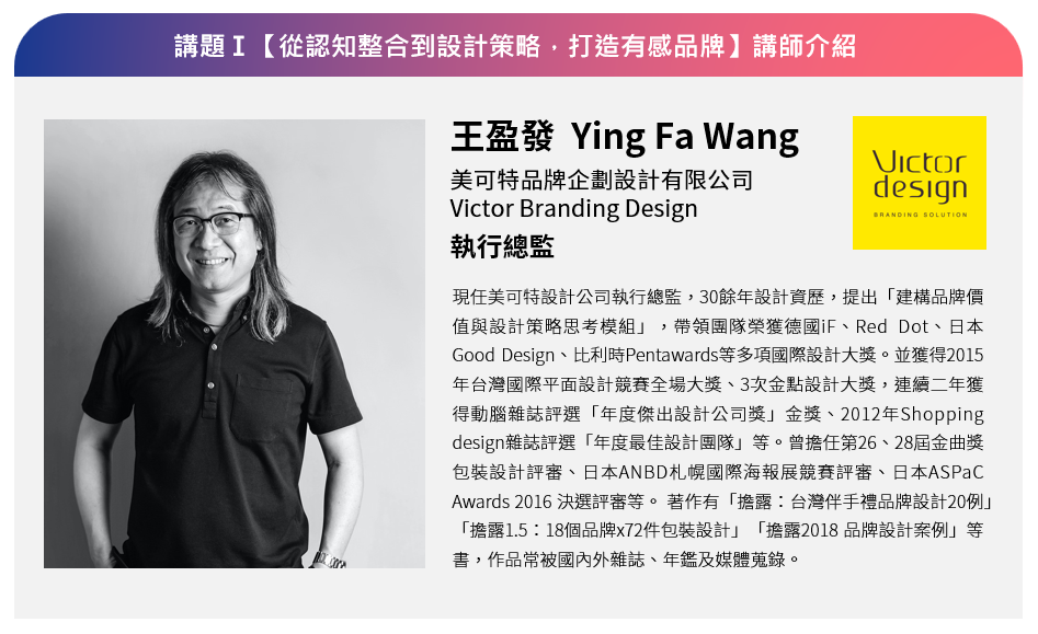 🔜 本講座透過品牌設計心法與市場溝通要訣的分享,引領企業主、設計師、品牌行銷人員瞭解從點、線、面、體的設計溝通整合,強化品牌在數位時代下的價值創造與共感力。