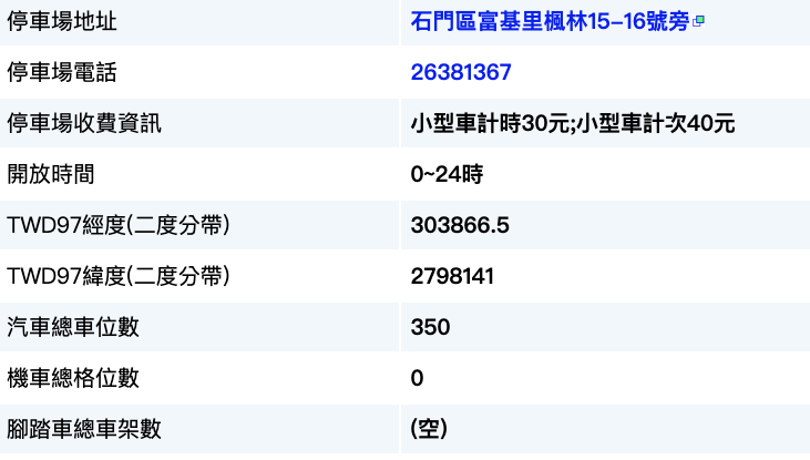 - 停車資訊