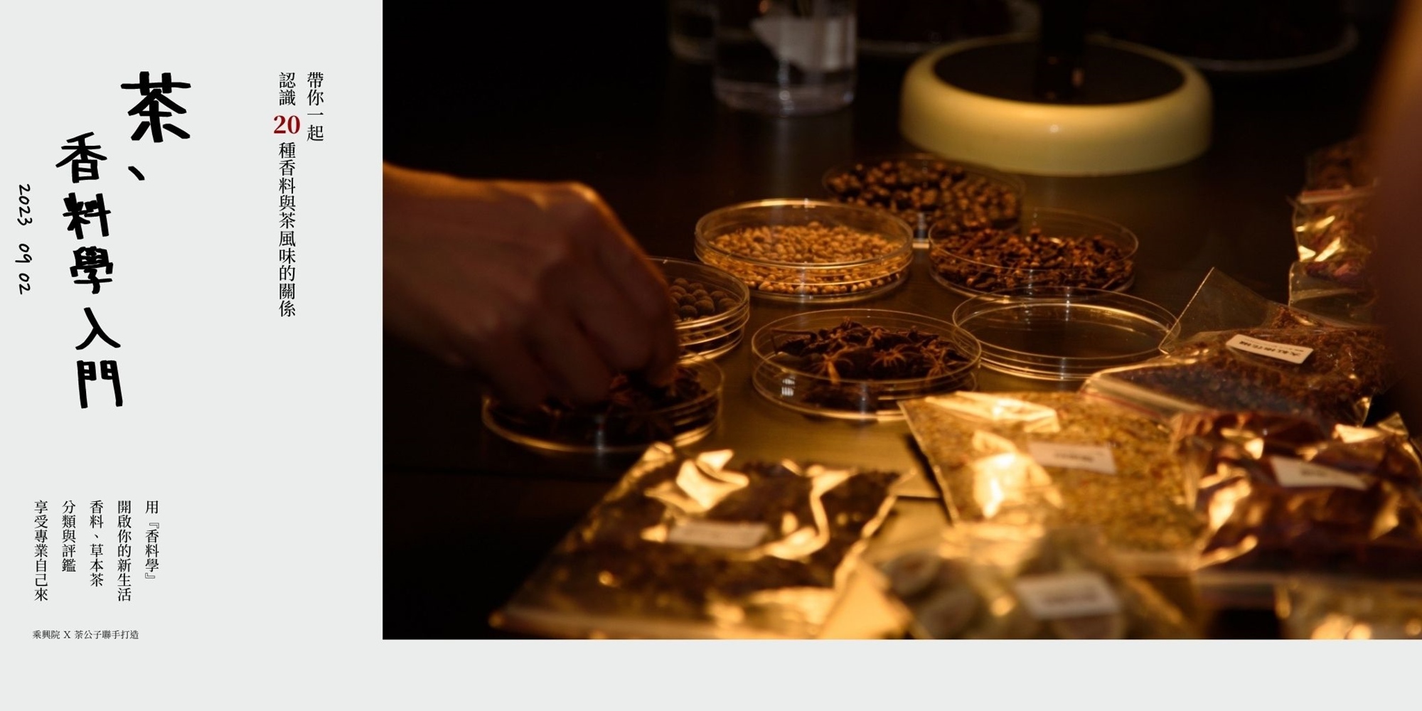 臺灣茶具有不同的特色,藉由發酵度的不同,在部分發酵茶領域產生不同香氣,而這麼多的香氣,該用什麼來形容呢?試試看認識香料吧!約20款香料,挑戰味覺極限,講師會一步步依照香料與香草特性,引領老學員認識不一樣的草本茶文化。