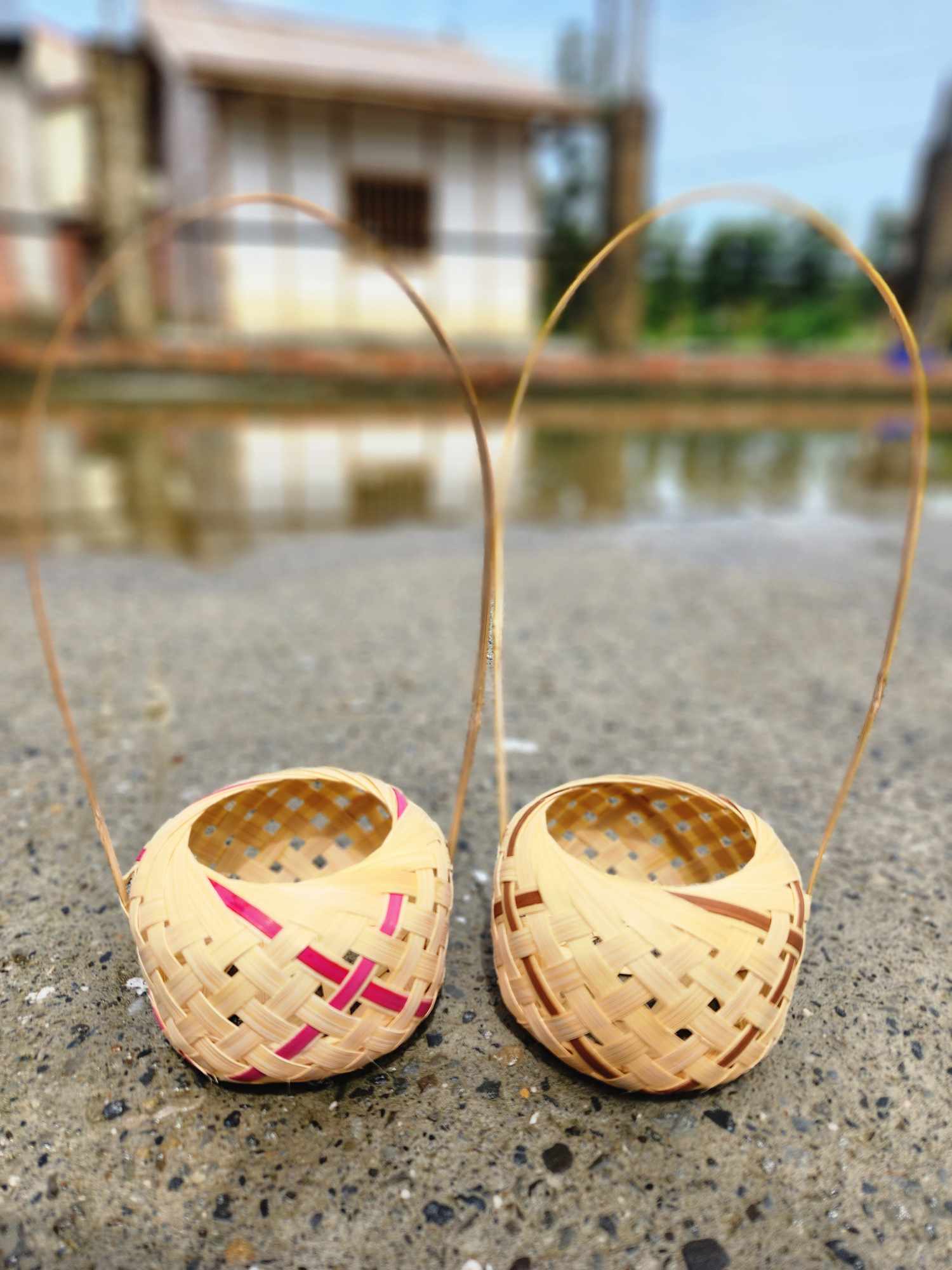 課程內容 | 課程教學「竹編小花籃」,直徑為7公分,提供兩種竹編顏色(紅色/咖啡色)可作編織選擇。