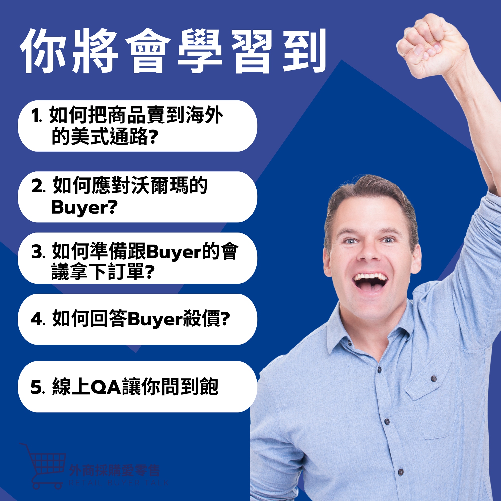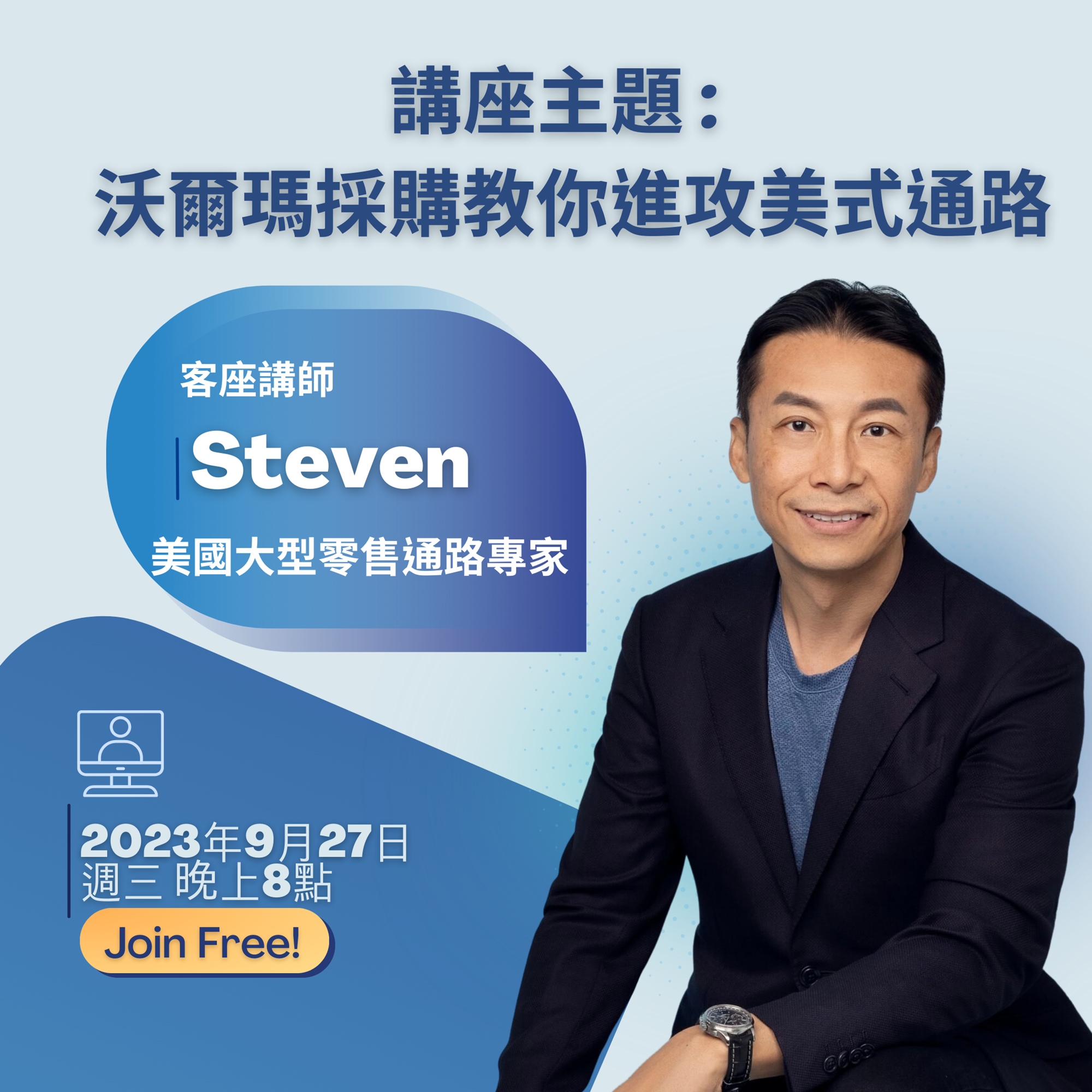 經過Steven的課程訓練後,很多工廠的老闆學到,如何跳過貿易商,直接跟通路合作。繞過貿易商,賺回工廠端該有的獲利,這堂課就教你如何和美國的Buyer接洽,直接把商品上架到美國實體通路!