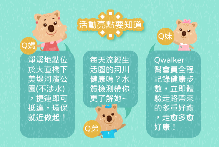 3.本活動報名網頁所蒐集之個人資料是基於「淨心淨力,與Q同行」淨溪活動報名及相關訊息通知之目的,主辦單位及承辦單位將於該目的所必需及相關法令規定之必要範圍內為蒐集、處理及利用,不會移作商業行銷用途。您所留存之個人基本資料將由主辦單位及承辦單位以電子檔案方式在國內處理及利用,倘您欲依個人資料保護法第 3 條行使權利,請與主辦單位或承辦單位聯繫。您得自由選擇是否提供相關個人資料及 類別,惟若您選擇不提供個人資料或是提供不完全時,將無法完成報名作業,因此可能婉謝您參加或無法提供您本活動之相關服務。如果您對活動有任何疑問,請於本報名網頁信箱聯繫。