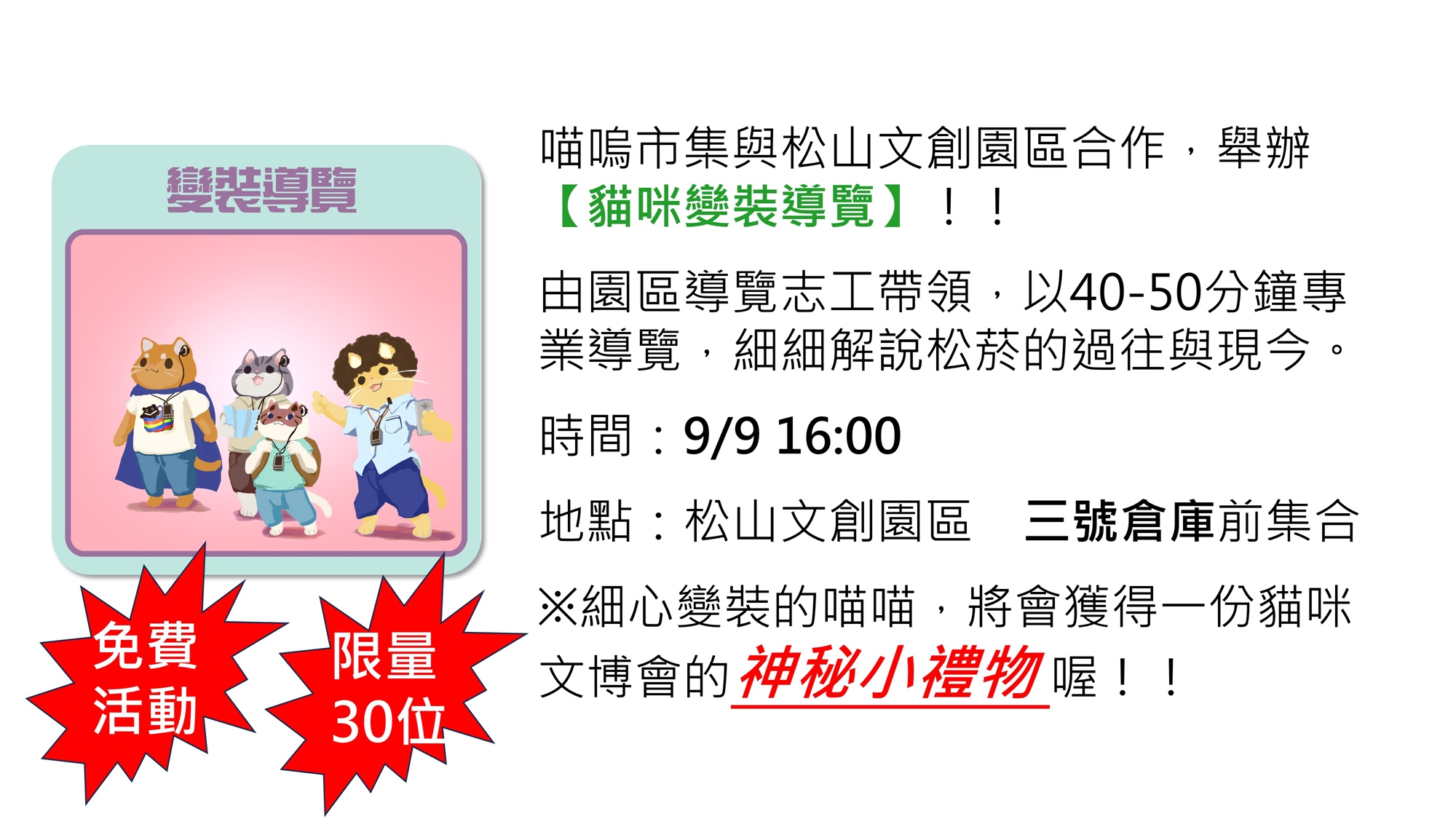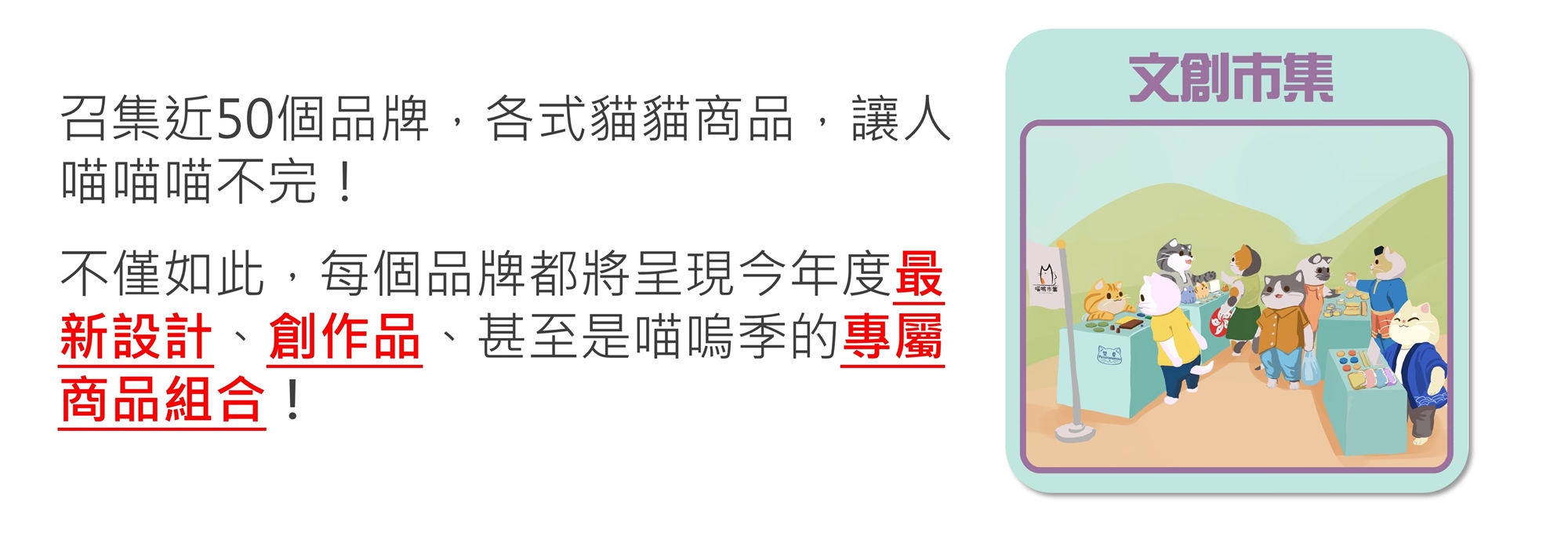 今年的活動松山文創園區三號倉庫擴大舉辦,不僅增加國際元素,更將文博會概念引入,呈現一場貓咪的文博會!