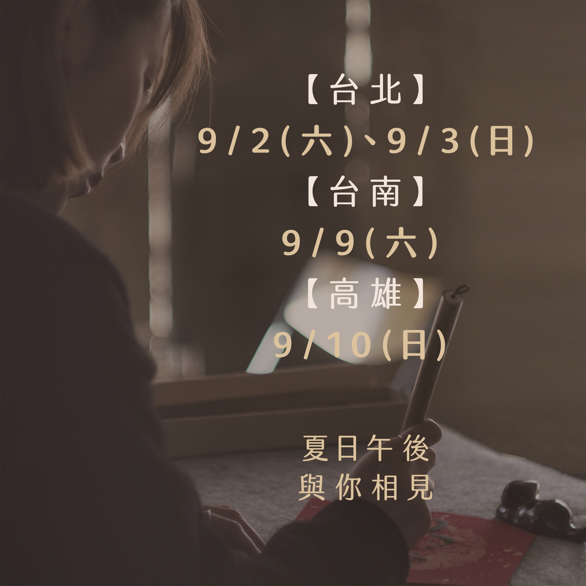 · 9/2(六) 15:00-17:30,共2.5小時(已滿班,可至粉專或IG私訊排隊十月)