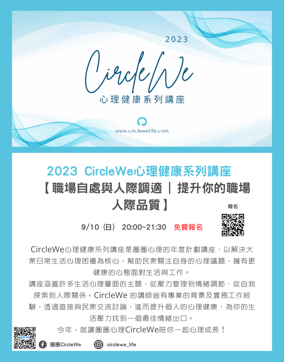 - 相關講座資訊請聯繫主辦單位圈圈CircleWe (LINE ID:@235doroe)