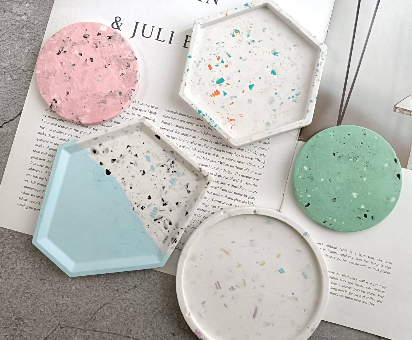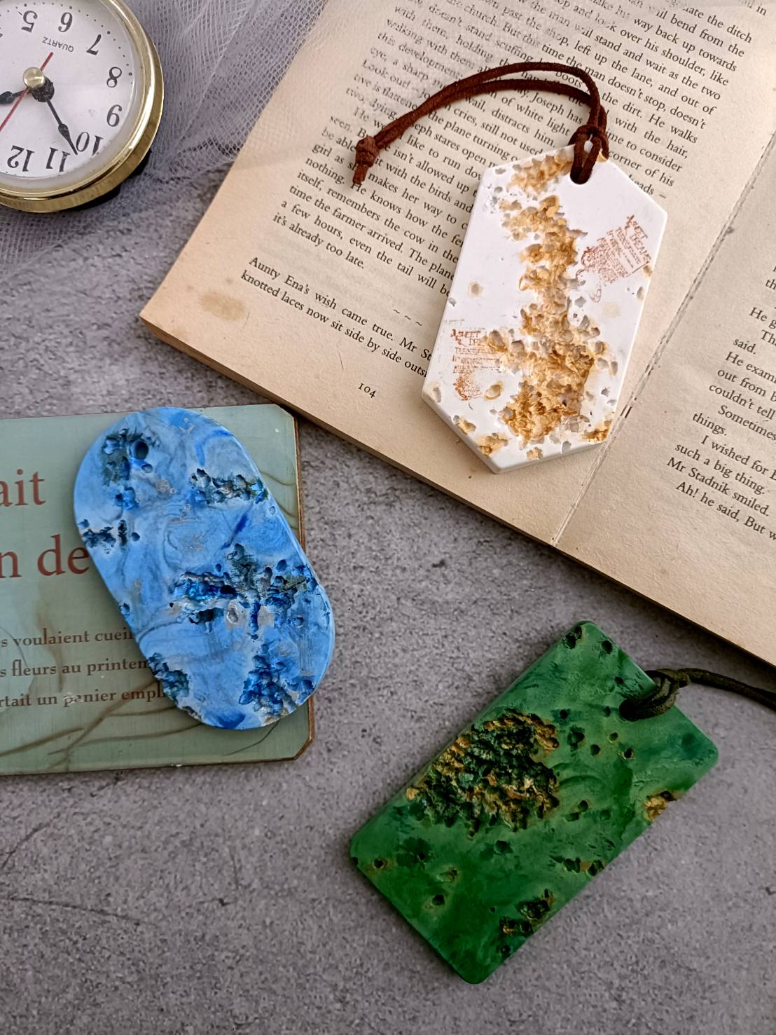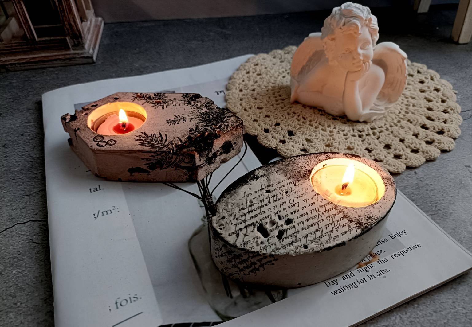 運用各種不同的技法,教你做出水磨石、復古老花磚、裂紋、浮雕、多色塗鴉、拓印、蝕刻…等各種具有特色擴香石;