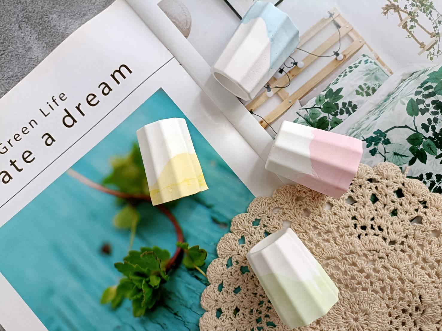 更能延伸應用製成石膏盤、杯墊、盆栽、燭台…等各種特色小物,不但美觀還很實用呢!