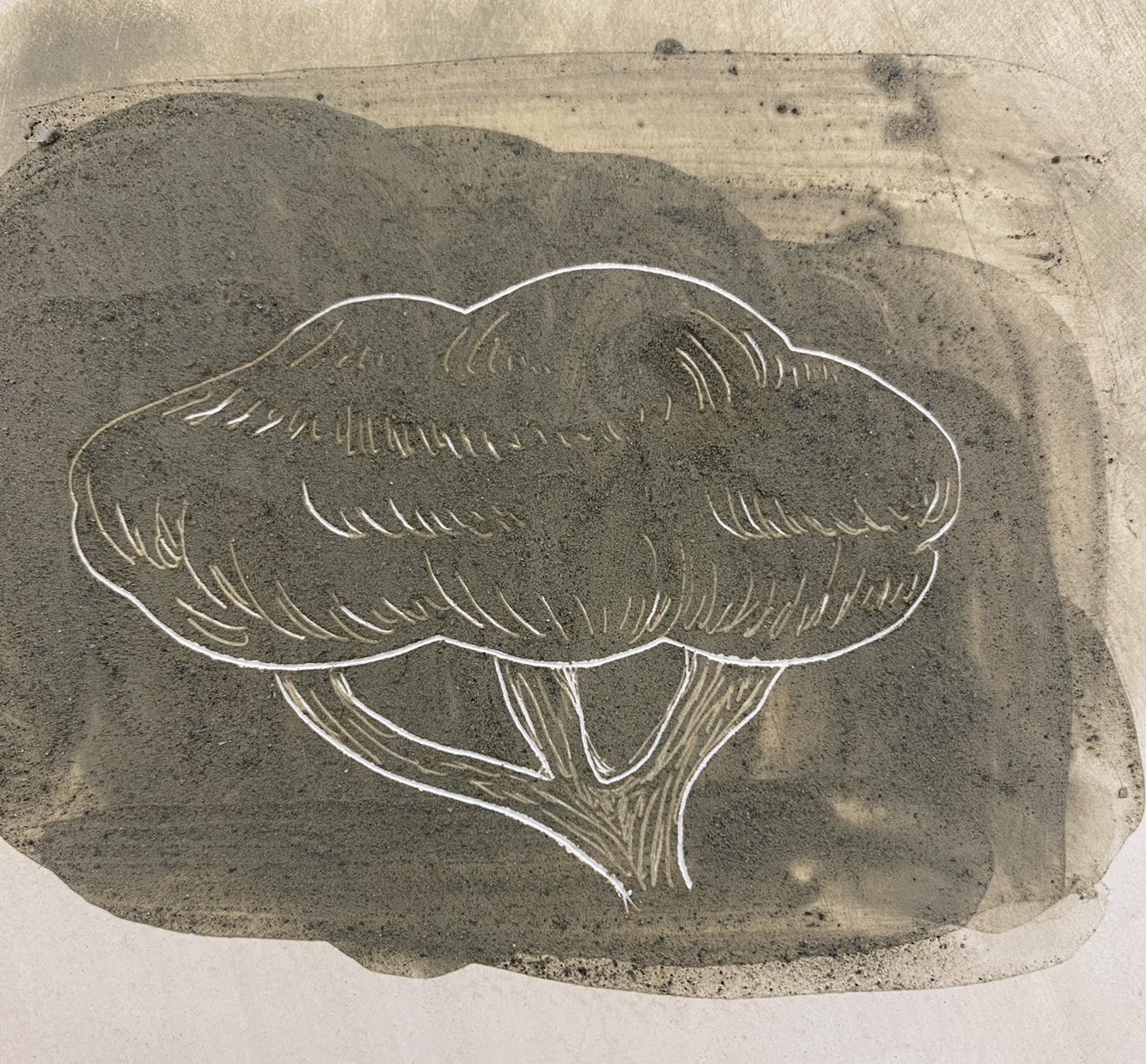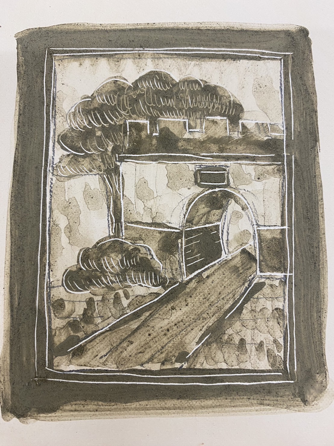 工作坊活動流程:展場作品導覽(15min)-講解土,將與素燒陶片(12*12公分),及其運用的注意事項,並示範鉛筆構圖(15min)-民眾創作(60min)