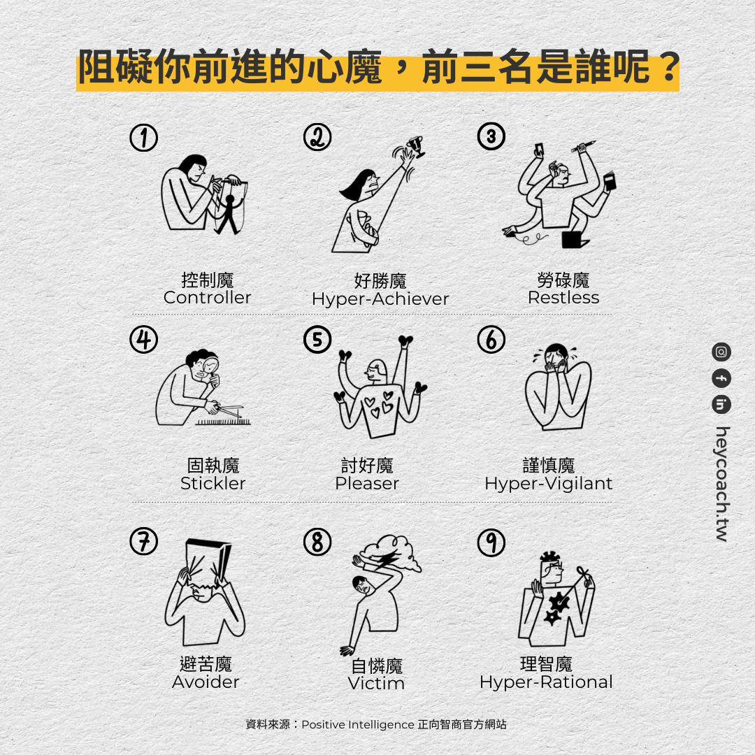 - 認識10項批判心魔的聲音+如何削弱⼼魔對自我的情緒與行為的影響?