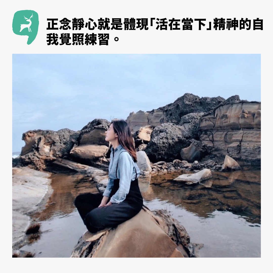 正念靜心(mindfulness meditation)就是體現「活在當下」精神的自我覺照練習,在此活動中,我們再次把身體與心靈(或意識)好好連接上,落實「與自己同在」的刻意經驗。