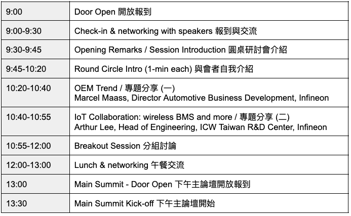 長年致力於台灣創新生態圈與國際鏈結的Anchor Taiwan,於2023年9月26日創新論壇上半場,與首席企業夥伴英飛凌 (Infineon),帶來德國總部第一手的歐洲車廠供應鏈趨勢。這是一場針對台灣電動車出海策略、車用IoT合作 (包含無線電池管理系統)、創新生態系統與企業孵化等,歐亞商務拓展的董總級討論。