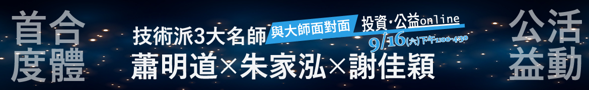3大名師朱家泓老師、蕭明道老師、謝佳穎老師,9月16日於台北國際會議中心201室將從散戶、主力作手等不同視角去暢談技術分析,激發出不同思維與新火花。