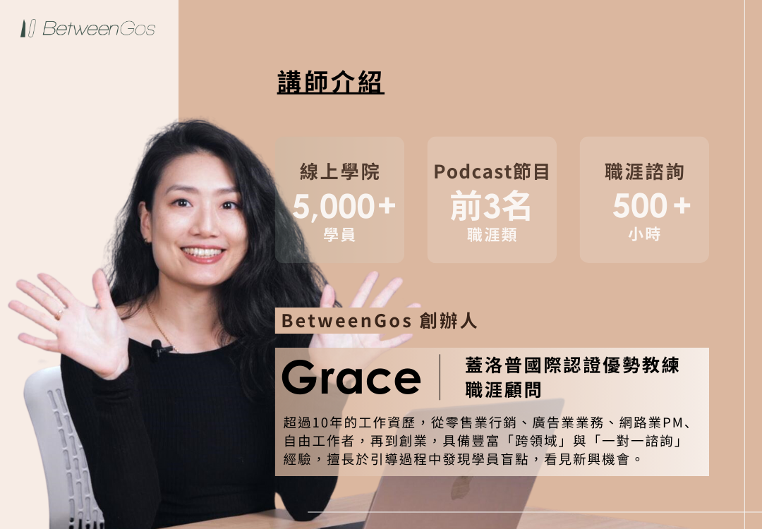 線上直播講座,有 QA 問答環節,任何職涯煩惱,歡迎填寫報名表單提問,或直接與講師/職涯教練 Grace 互動,解惑你的疑問。
