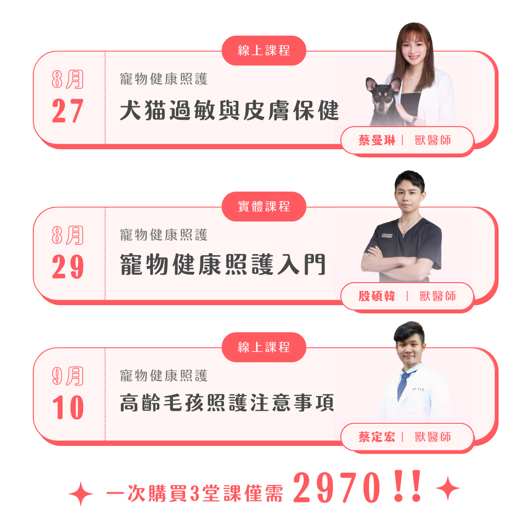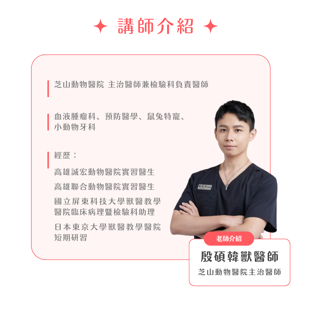 此次活動課程由行業內的專家殷碩韓獸醫師主講,探討如何照護毛孩的問題,並分享維護他們健康的實用方法。透過深入的專業知識,您將能夠更好地照顧毛孩的健康需求!