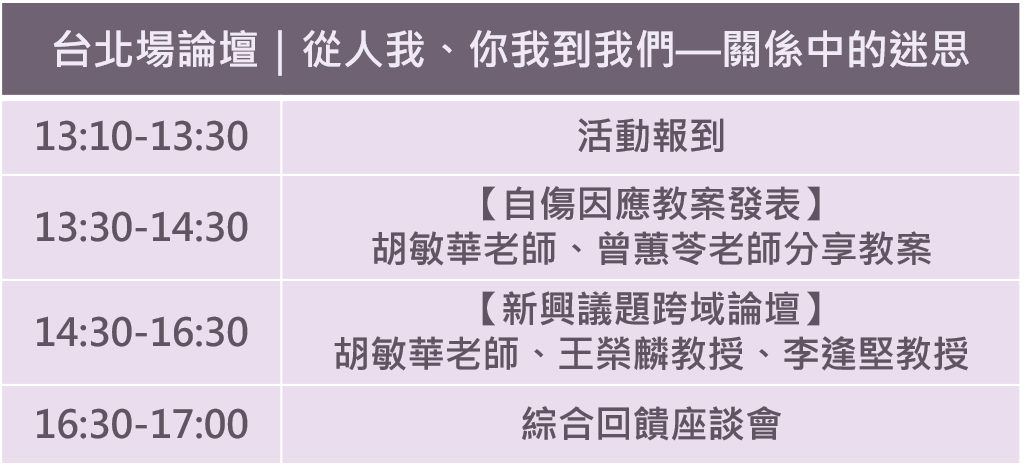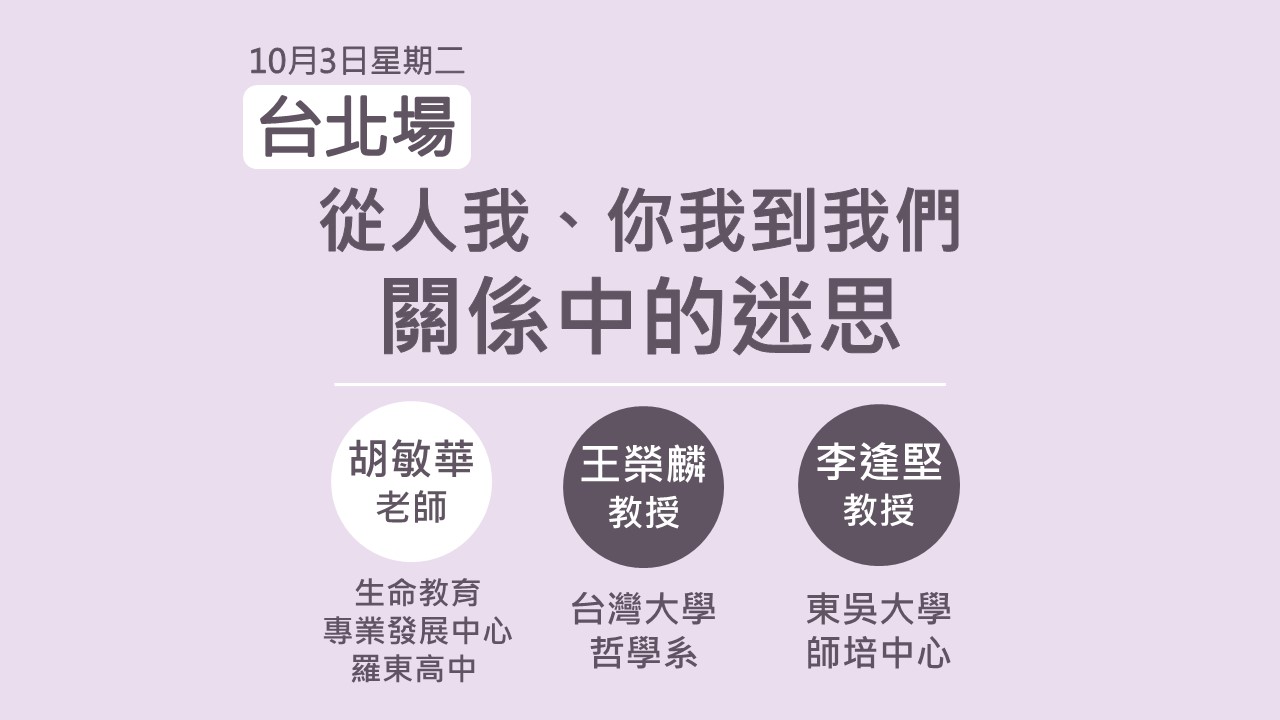 【台北場】生命教育新興議題探究論壇|從人我、你我到我們─關係中的迷思(歡迎一般民眾踴躍報名)