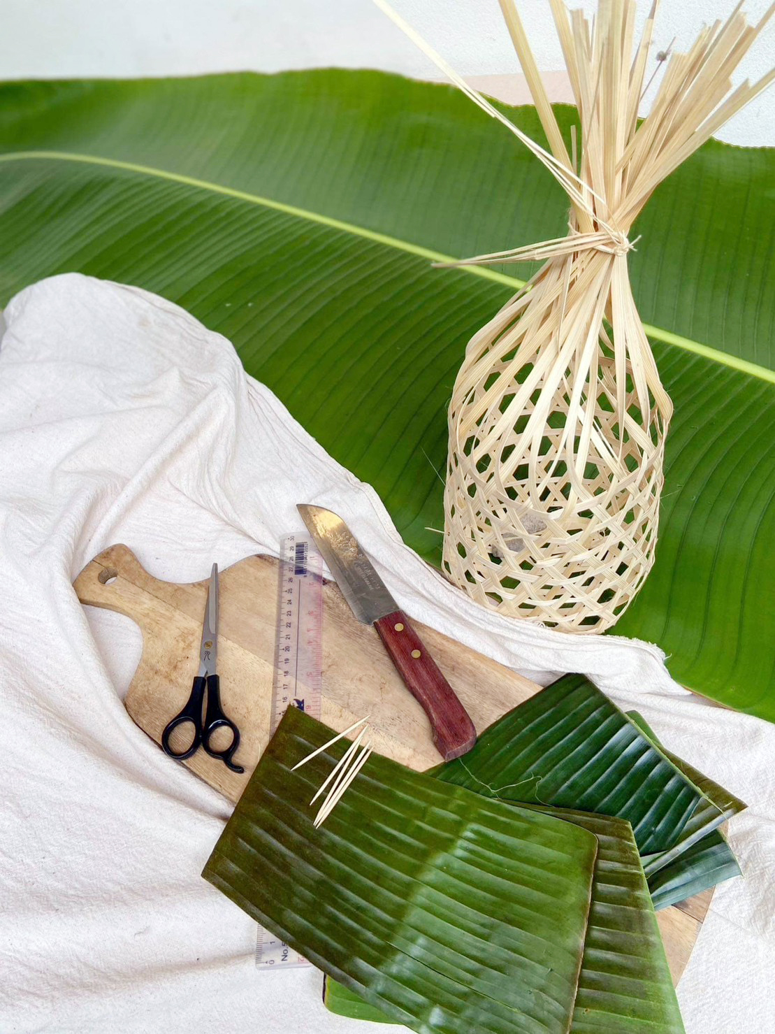學習如何用 3 種不同的方式用紙香蕉葉包裹泰式甜點,