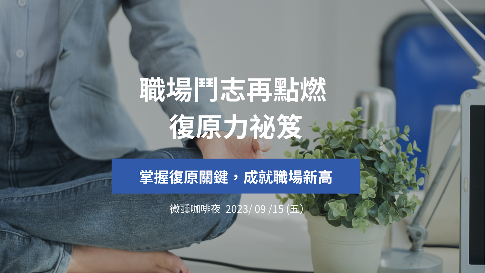現在就行動起來,報名參加活動,讓您的職場鬥志再度點燃!不僅將您自己的職場復原力提升至新水平,還將與一群志同道合的人一起分享學習和成長的喜悅。立即掌握這個難得機會,為自己的職涯描繪出更加光明的未來吧!