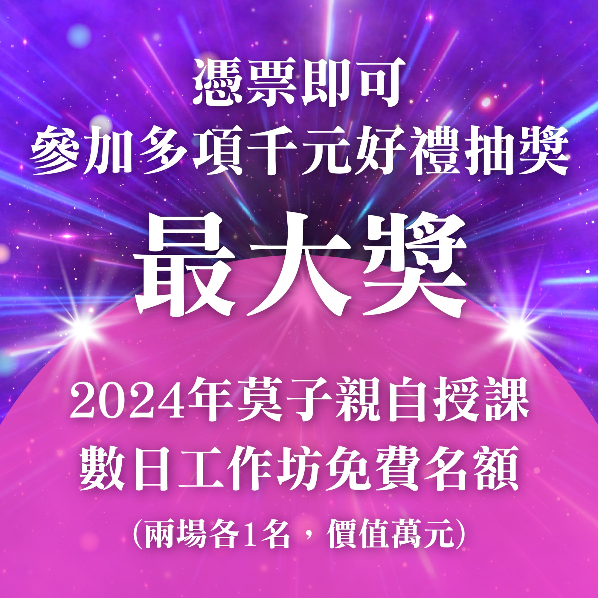 最大獎:2024明年由莫子親自實體授課、至少兩天一夜的工作坊免費參加名額,上下場各抽1名!