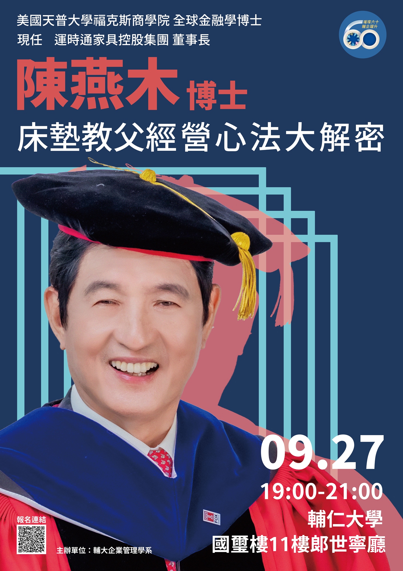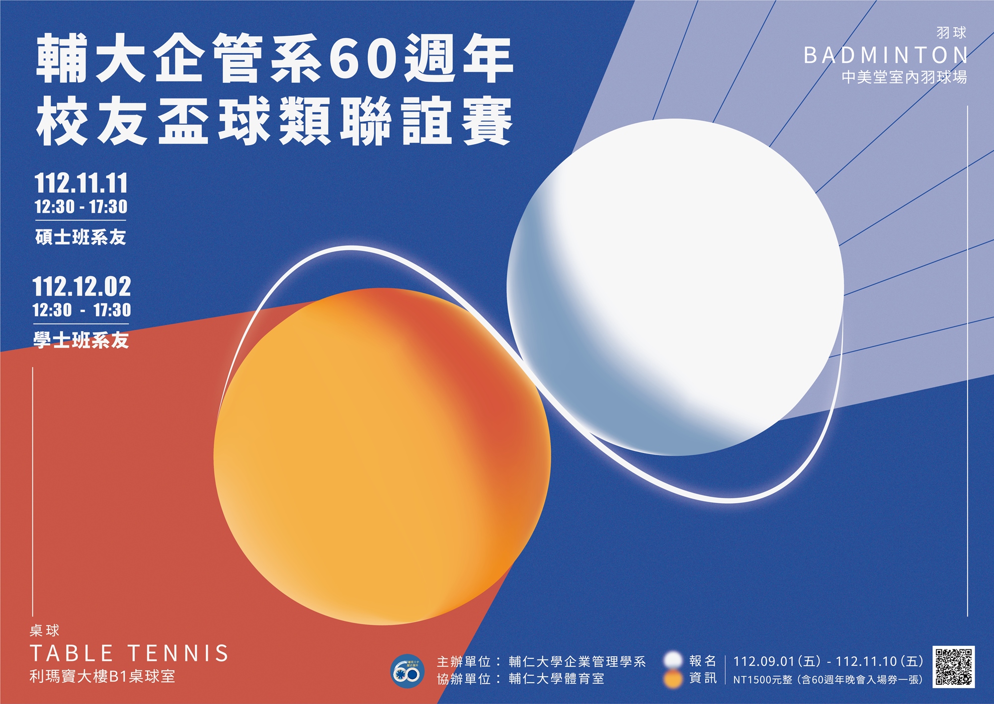 歷經多個月的密集籌備,我們引領期盼的輔大企管系60週年慶祝活動,即將在112年11月11日(碩士班主場)和112年12月2日(學士班主場)舉辦,歡迎各位系友踴躍報名參加!