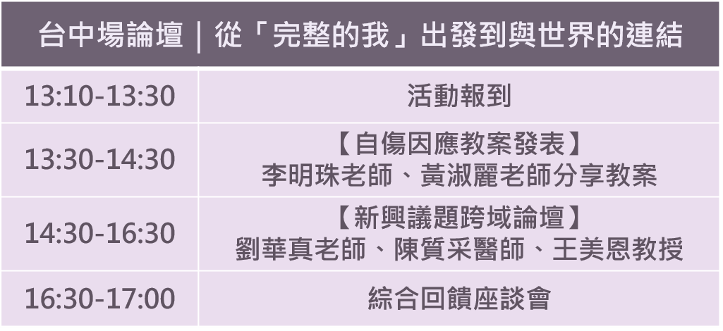 【台中場】生命教育新興議題探究論壇|從「完整的我」出發到與世界的連結