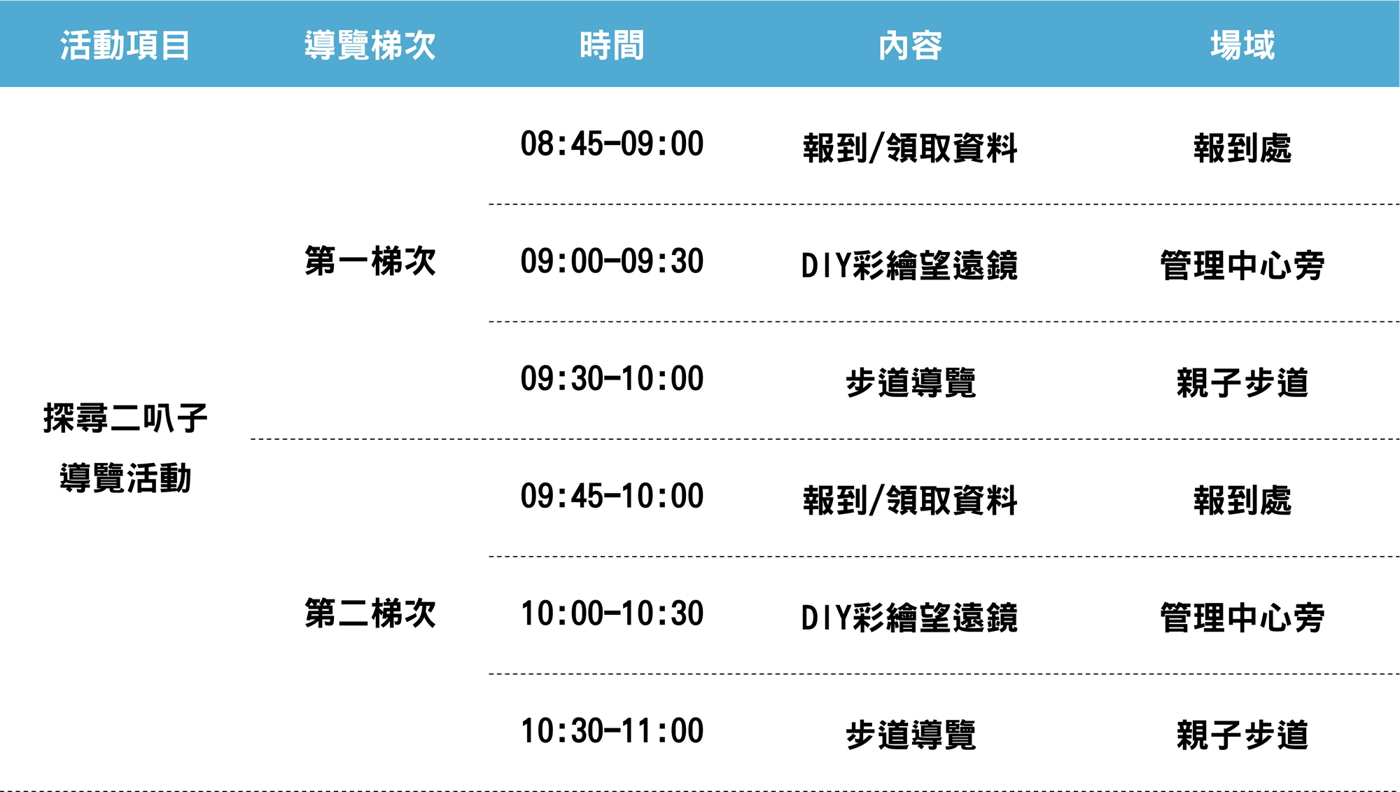 導覽梯次及名額 :