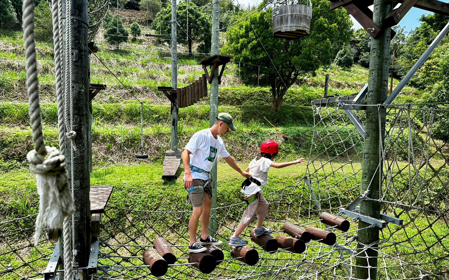 (第三層路線1) 網洞穿越>高空衝浪>泰山擺盪>蔓藤路>桂河大橋>天空滑降