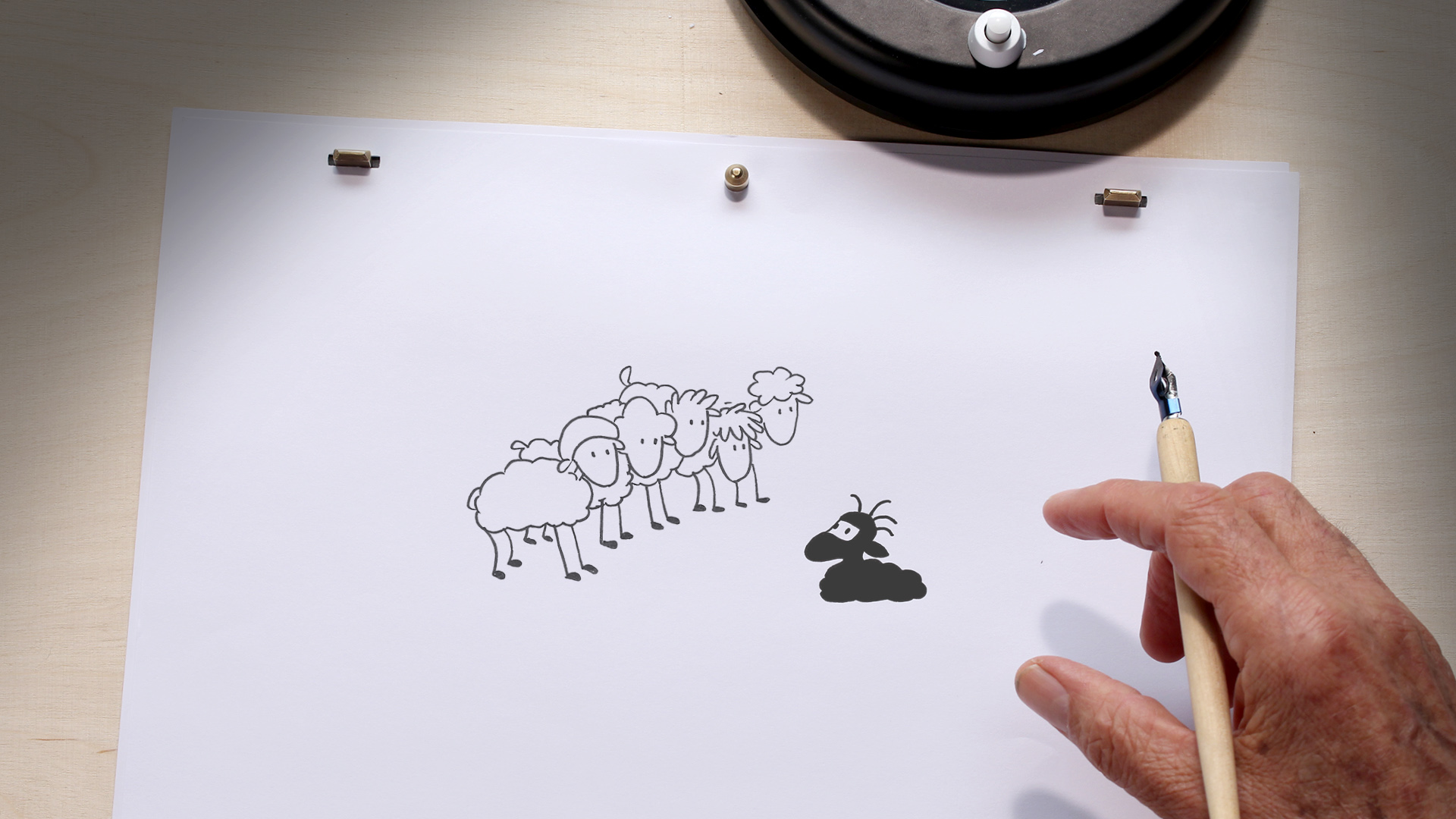 羊咩咩們從墨水下動起來了,但有一天,一個跟他們外表不太一樣的傢伙闖了進來⋯⋯。