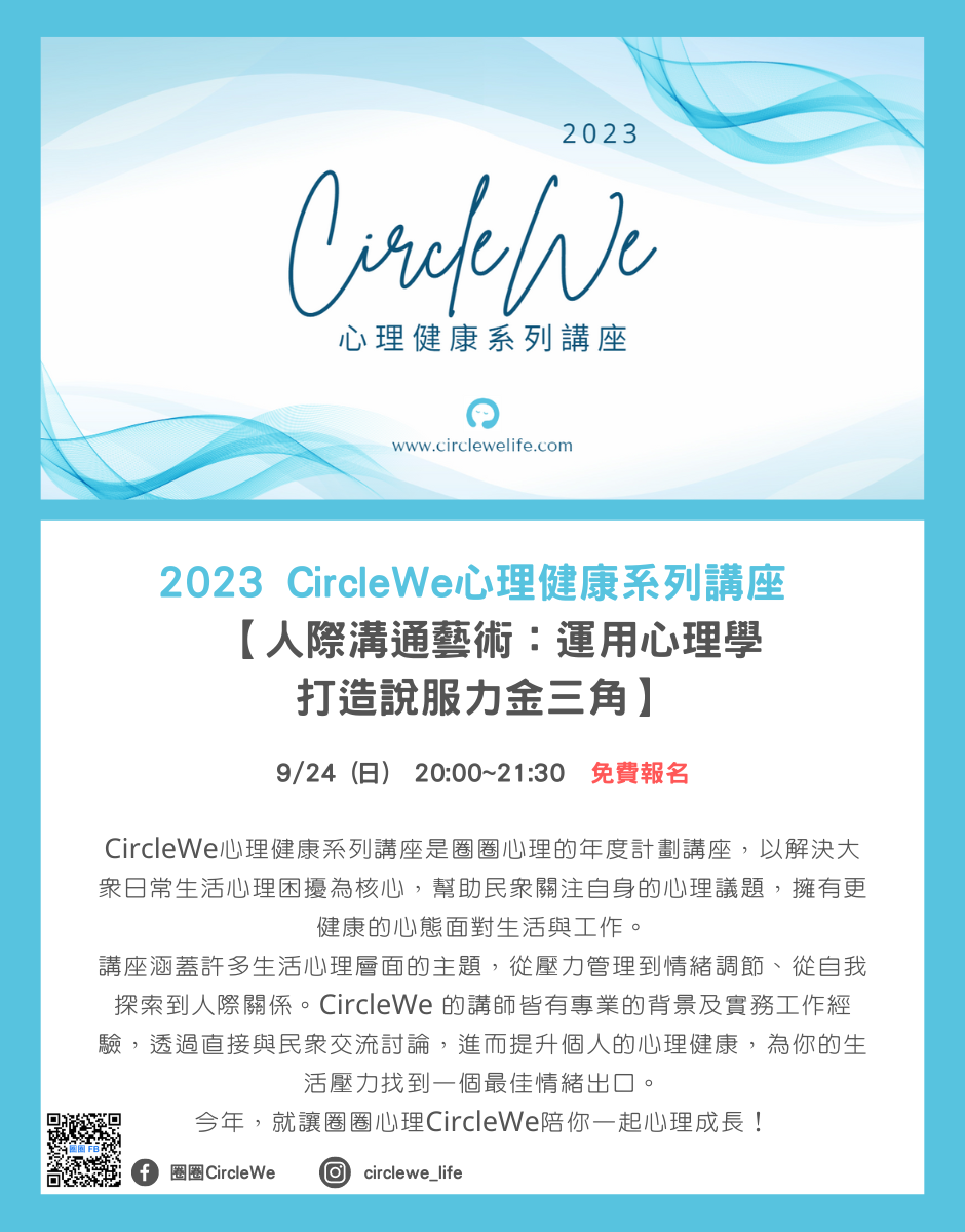 - 相關講座資訊請聯繫主辦單位圈圈CircleWe (LINE ID:@235doroe)