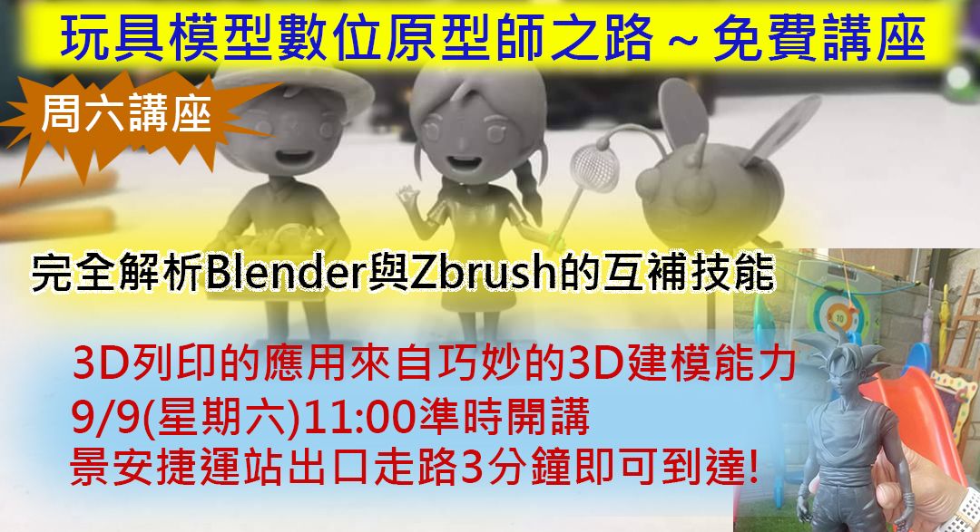 Blender幾何造型數位建模 + Zbrush數位雕刻免費講座—玩具產業數位原型師養成課程介紹