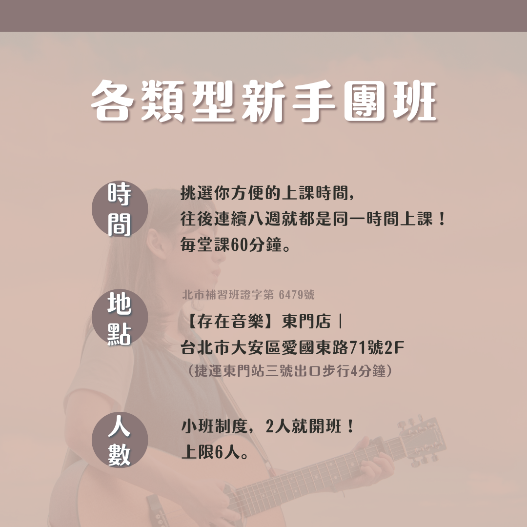 ✨8堂課目標:打穩基礎樂理節奏、自彈自唱、學會應用各式曲目