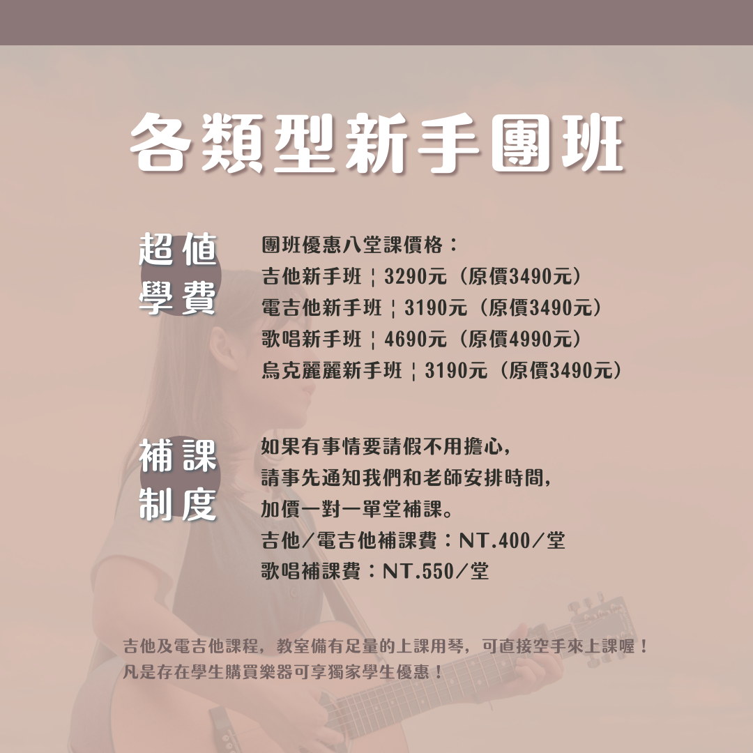 🎵 電、木吉他都已幫你準備,兩手空空就可開始上課