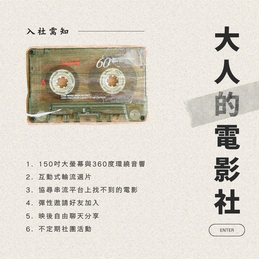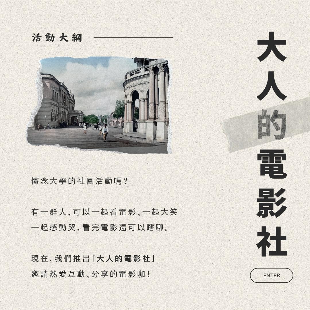 懷念大學的社團活動嗎?有一群人,可以一起看電影、一起大笑、一起感動哭,看完電影還可以瞎聊。現在,我們推出「大人的電影社」,邀請熱愛互動、分享的電影咖!
