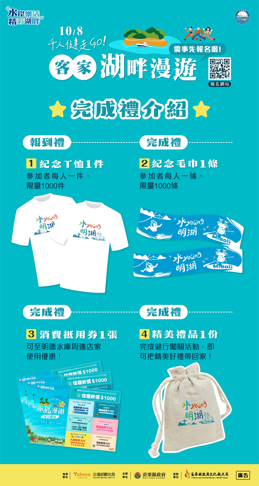 🌟報名參加可獲得水漾明湖專屬T恤,完成闖關還能兌換紀念毛巾、精美禮品及專屬優惠等多項好禮,還不快來報名參加!🌟