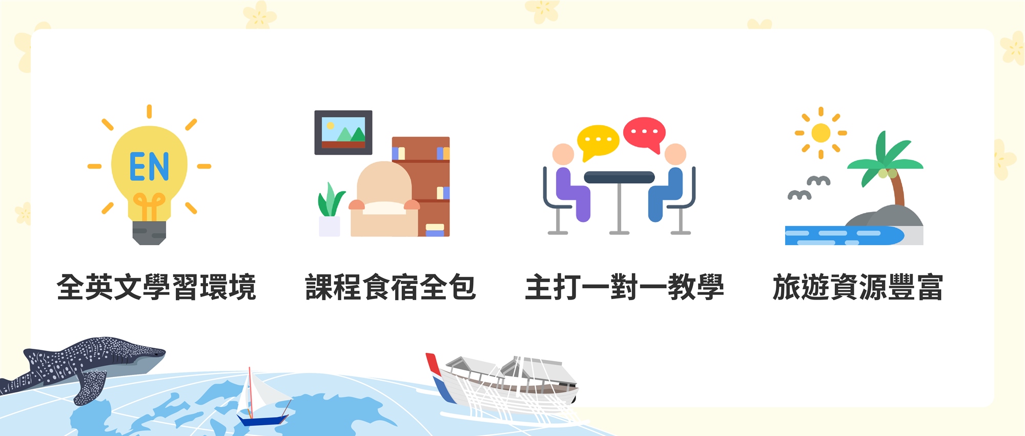 - 贈送菲律賓語言課程獎品不包含機票、簽證及學雜費用。