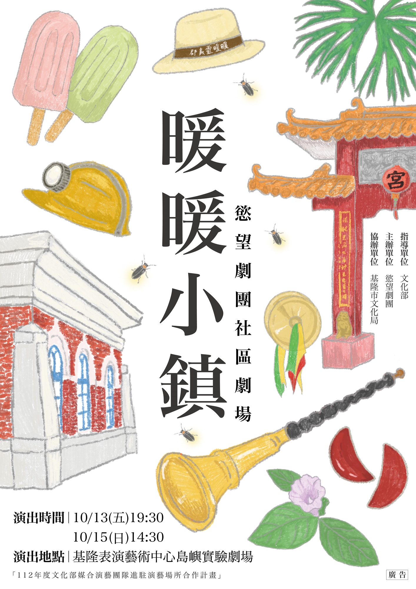 《暖暖小鎮》將利用島嶼實驗劇場的特色,活用場地資源,呈現出暖暖各場域的不同面貌,歡迎大家一起進島嶼,感受它的魅力。