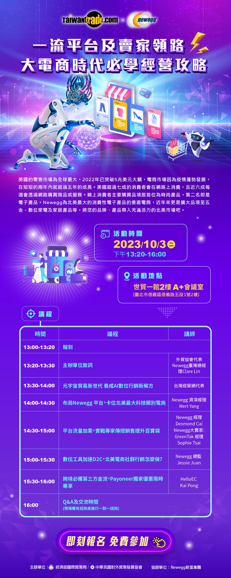 Taiwantrade x Newegg 一流平台及賣家領路 大電商時代必學經營攻略