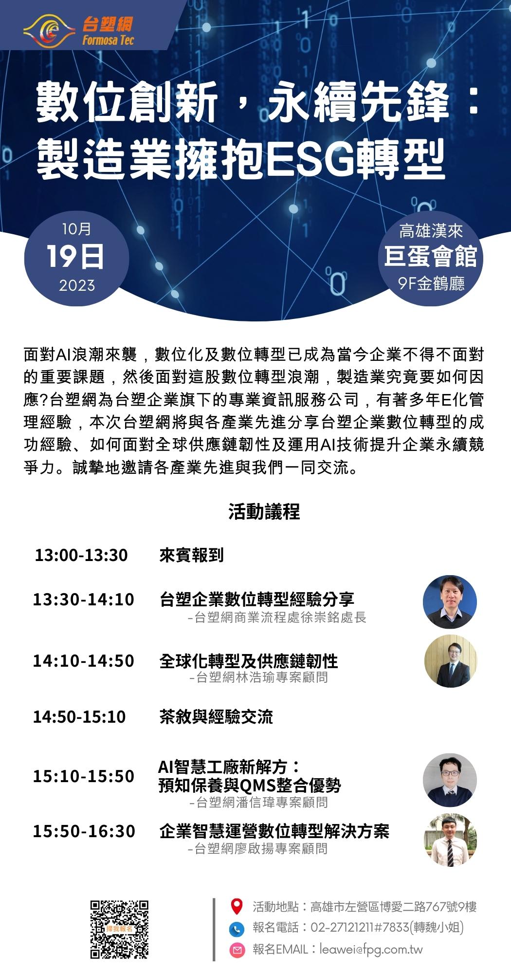 【台塑網數位轉型研討會】數位創新,永續先鋒: 製造業擁抱ESG轉型
